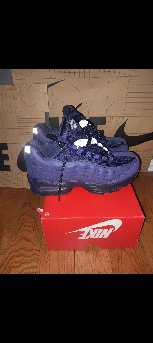 These Nike Air Max 95 shoes are a deep navy blue colour. They come with their original box. These kicks are great for everyday wear!