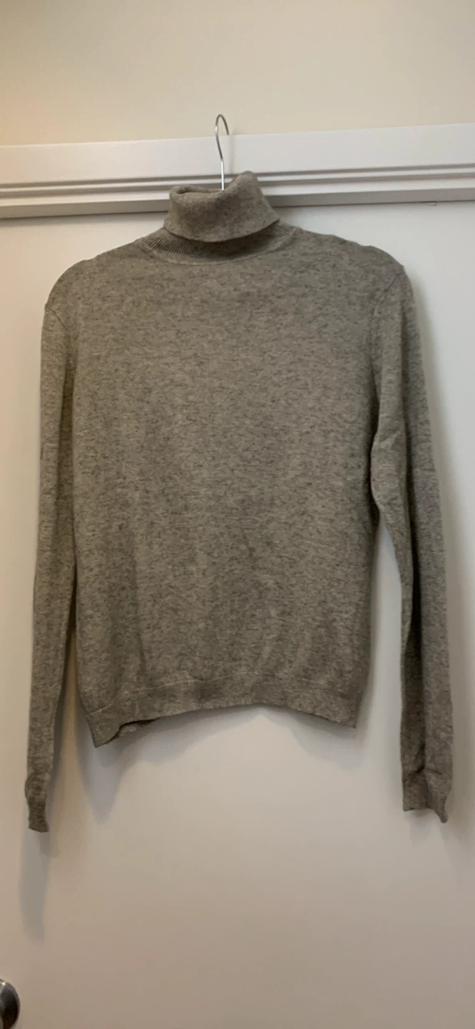 Ralph Lauren Petite turtleneck sweater in a light grey colour. It's made with 83% silk, 14% cashmere, and 1.5% nylon with elastane. Size is P/L.