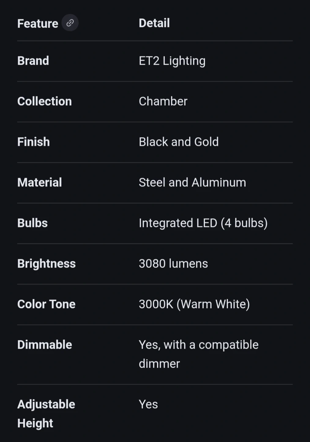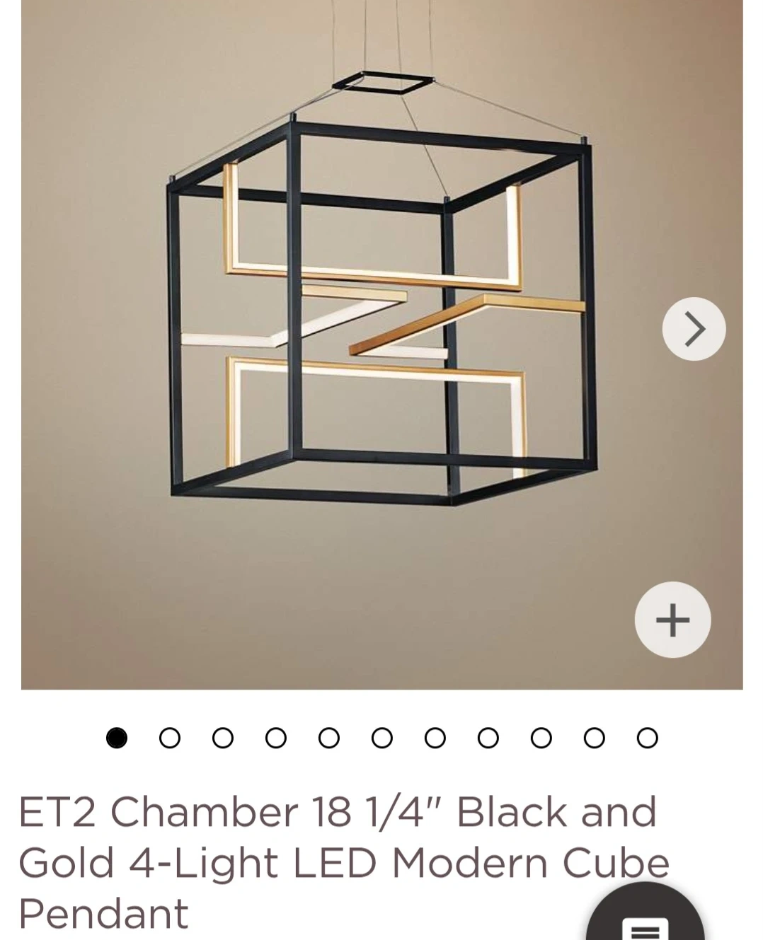 This ET2 Lighting pendant features a modern cube design in black and gold. It's made of steel and aluminum with integrated LED bulbs. The height is adjustable and it's dimmable with a compatible dimmer.