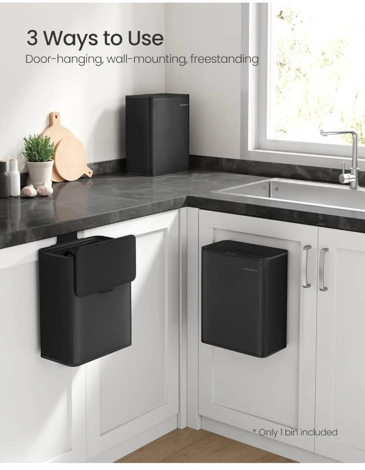 Versatile SONGMICS trash can. This 8L (2.1-gallon) black bin is super handy. Has a lid and can be used freestanding, hung on a cabinet door, or wall-mounted. Great for kitchen, bathroom, or under the sink. Pick up near Brock Road and Rex Heath Drive in Pickering. 2 available.