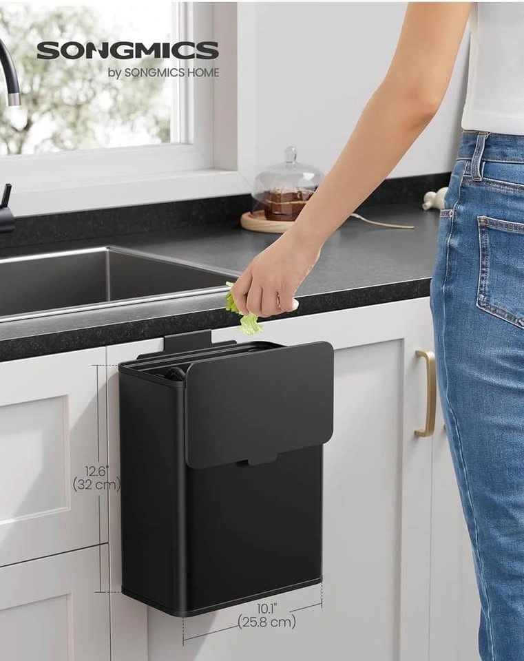 SONGMICS Hanging Trash Can 8L Black (2.1GAL)