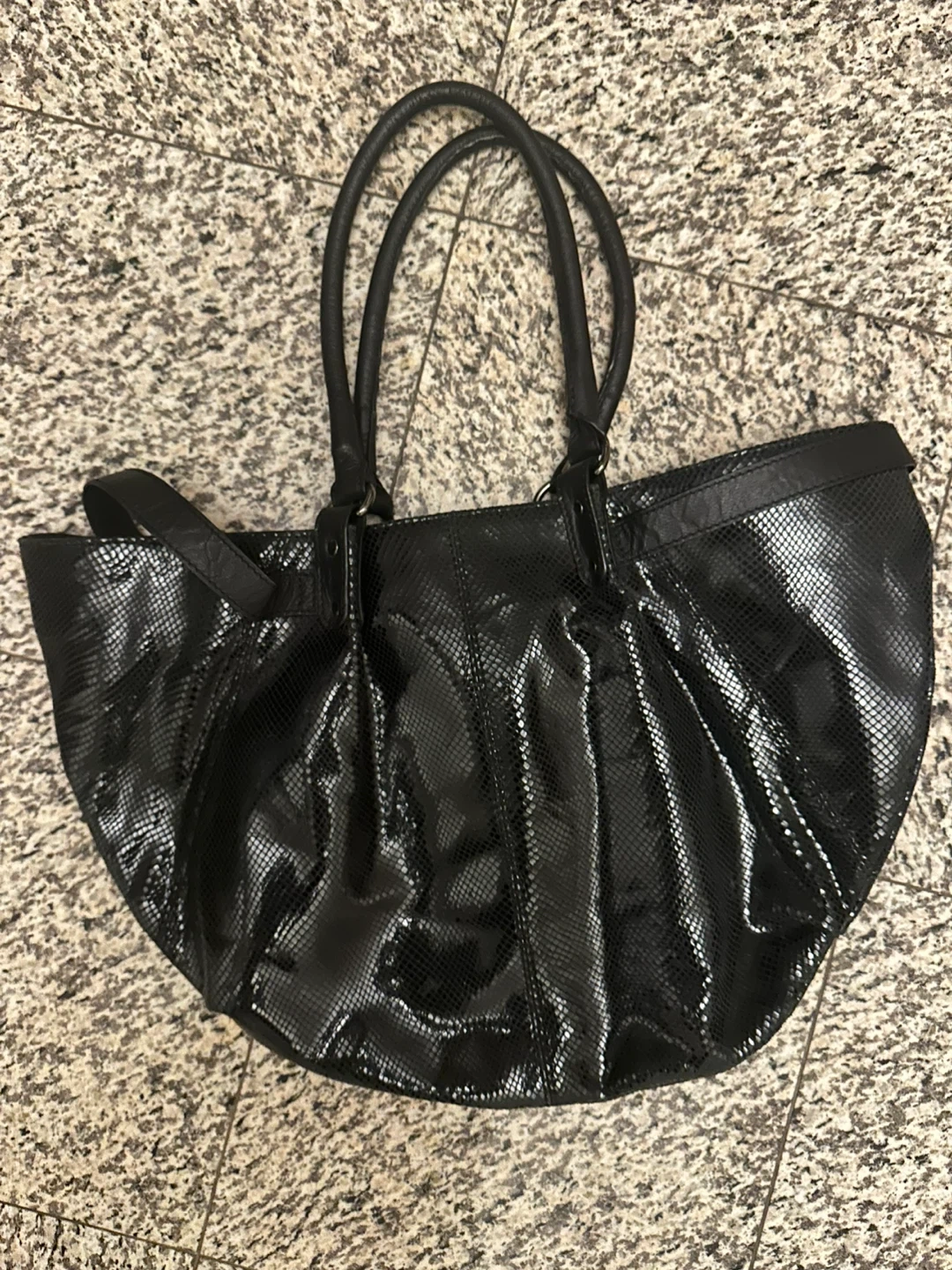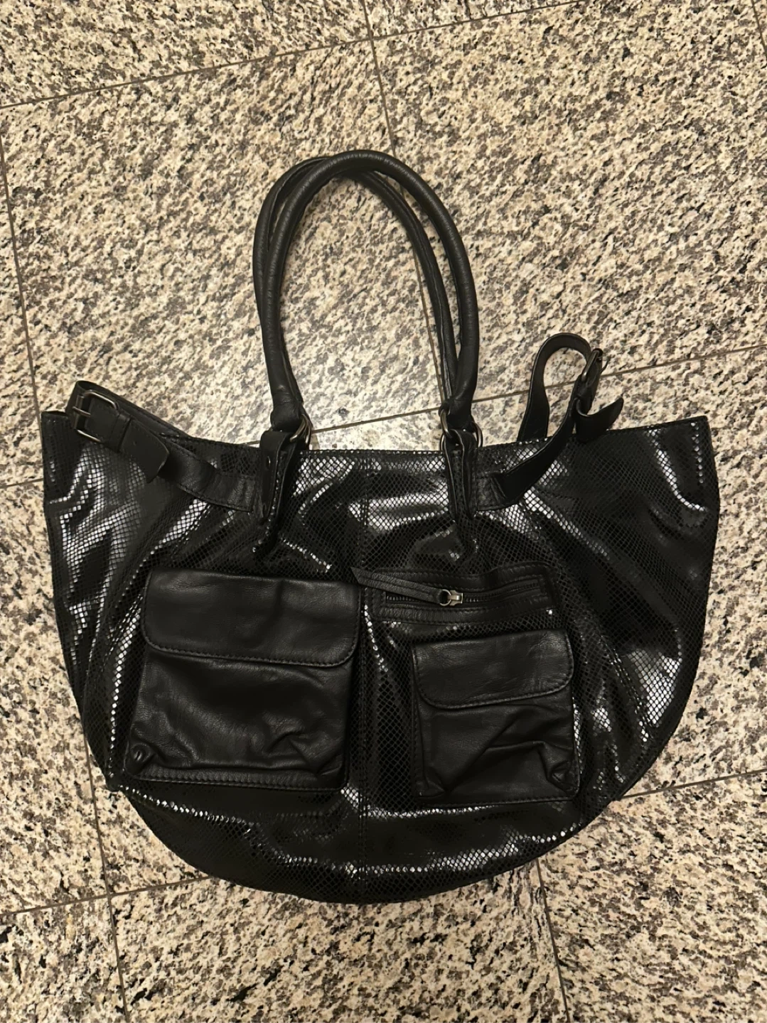 Spacious and sturdy vintage purse with a faux snakeskin texture. Lots of compartments, and it snaps together to keep items from falling out. I have too many bags but hoping someone loves this bag as much as I do!