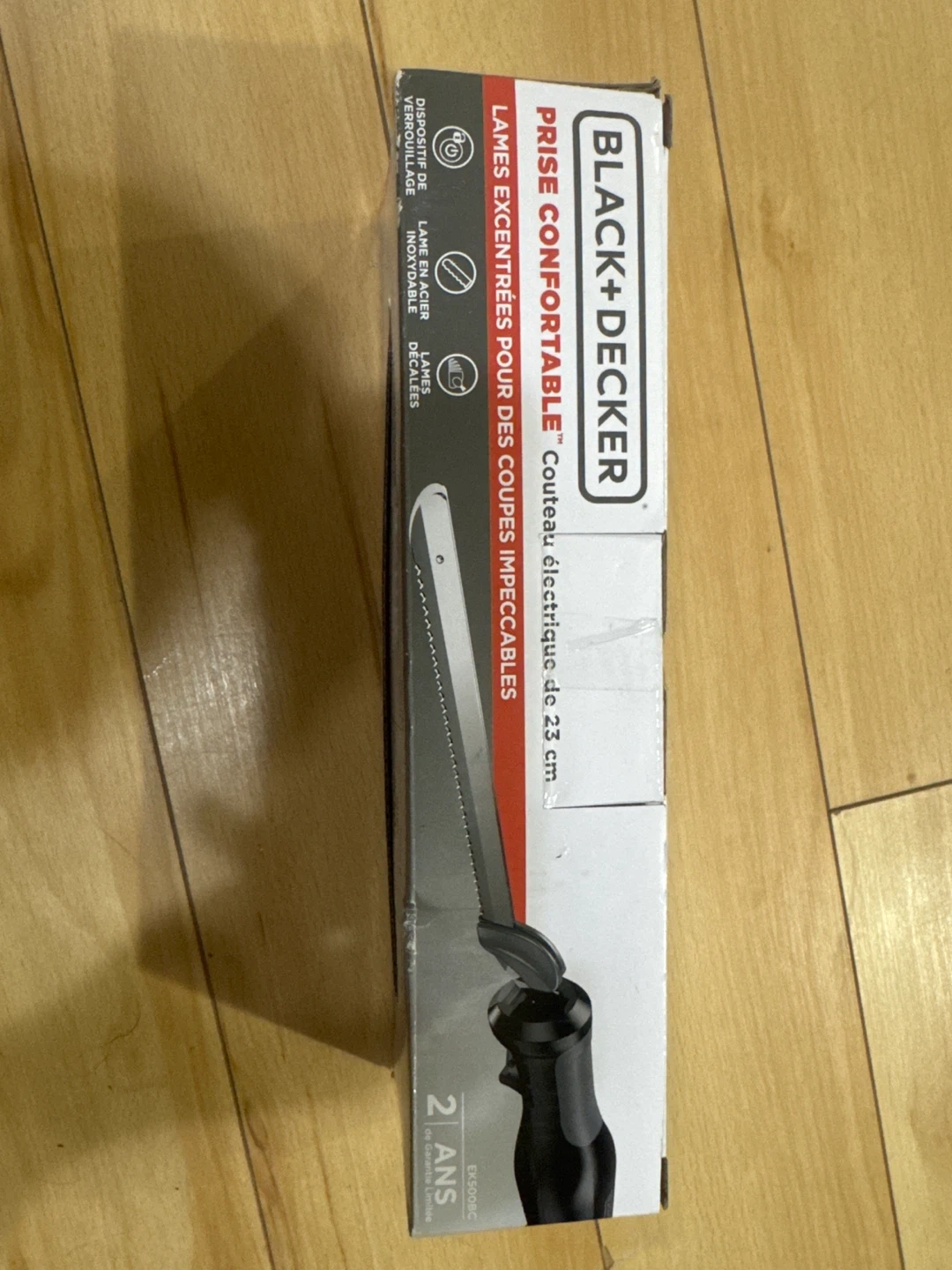 This Black+Decker electric carving knife comes with a 23 cm stainless steel blade. It features a lock-on safety feature for secure use. This knife is great for carving roasts and bread!