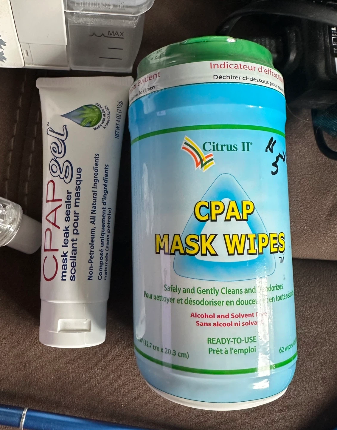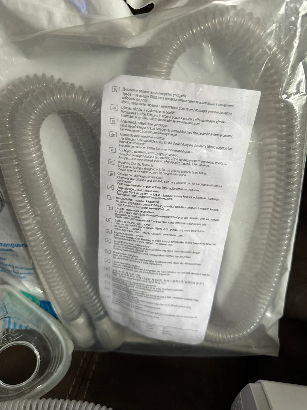 ResMed AirSense 10 CPAP machine in great condition and with a recently replaced water reservoir and lots of accessories both new and used including cleaning wipes, cleaning brushes, seal gel, masks, tubes, connectors, tube management stand, filters etc. (see photos)