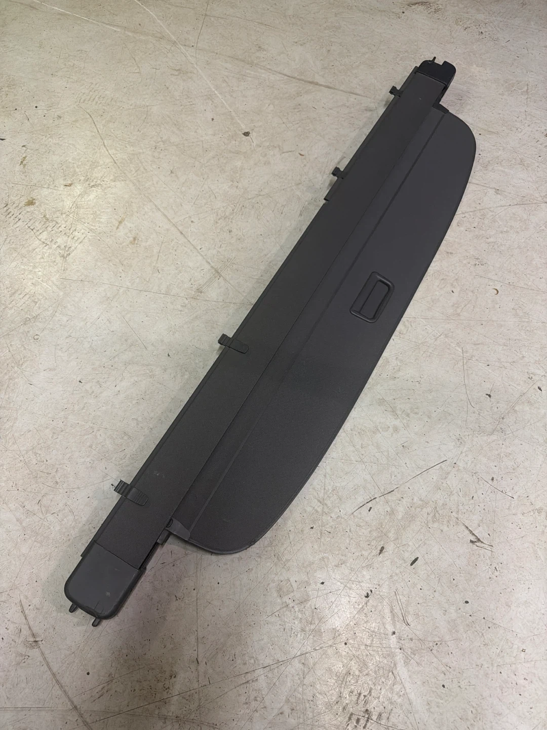 This is a black cargo cover for a 2007 to 2015 Audi Q7 vehicle. It's made of durable plastic. It provides privacy for items in the trunk.