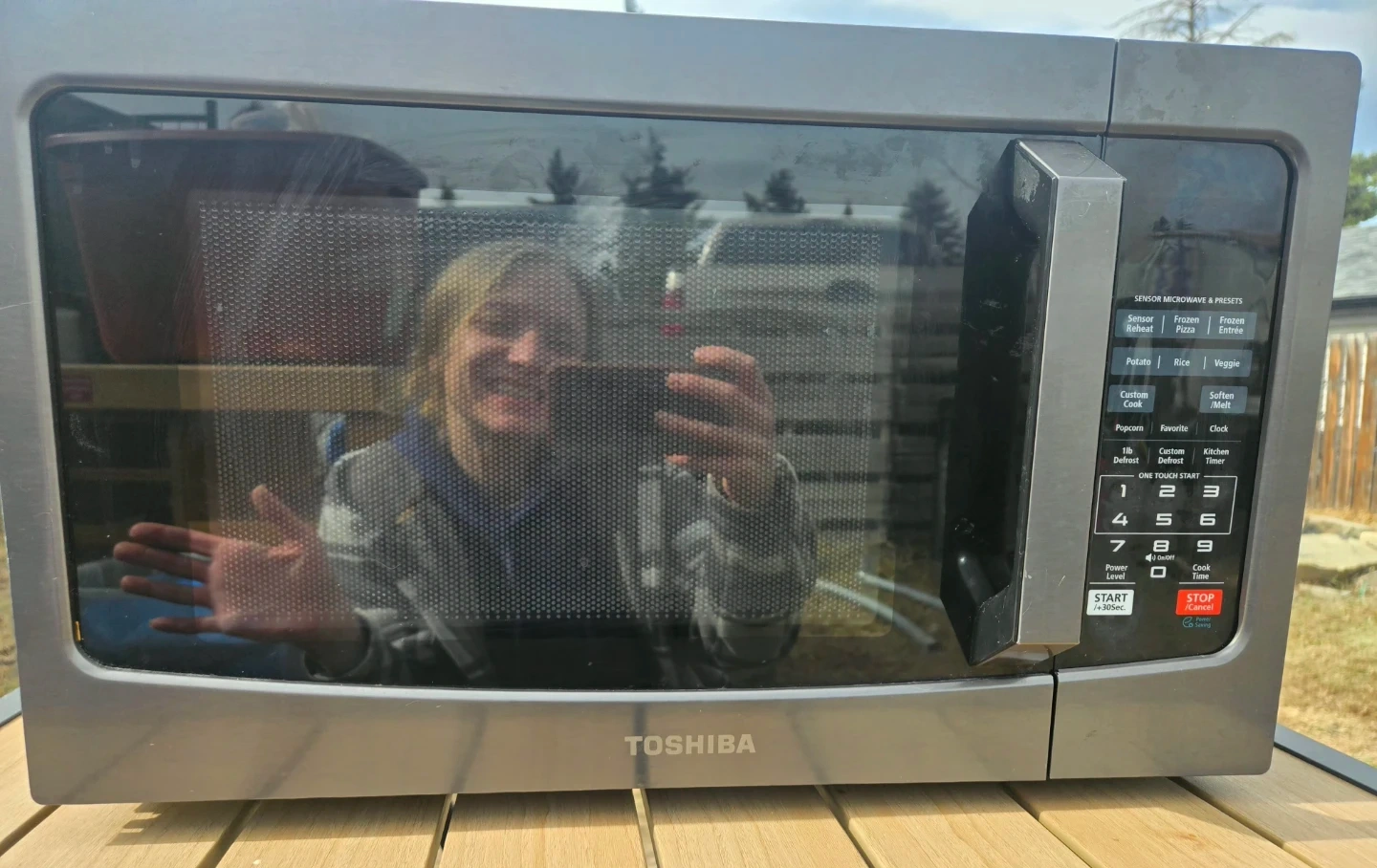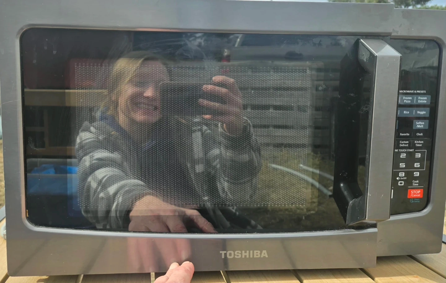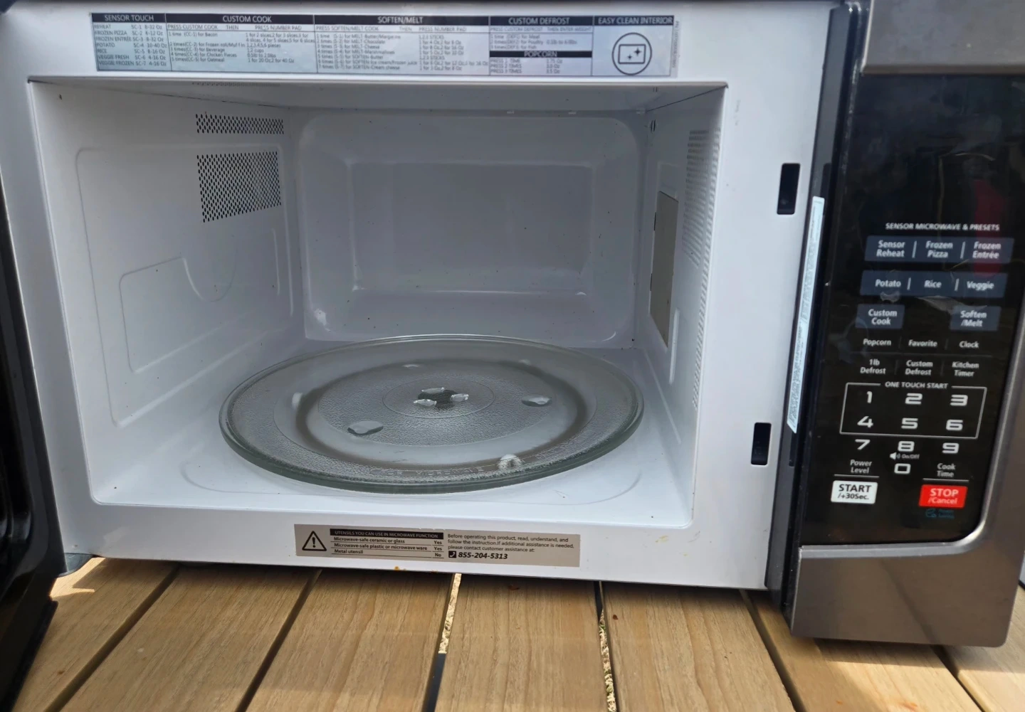 Toshiba 1.2 cubic-foot 1100-watt microwave oven has the following: