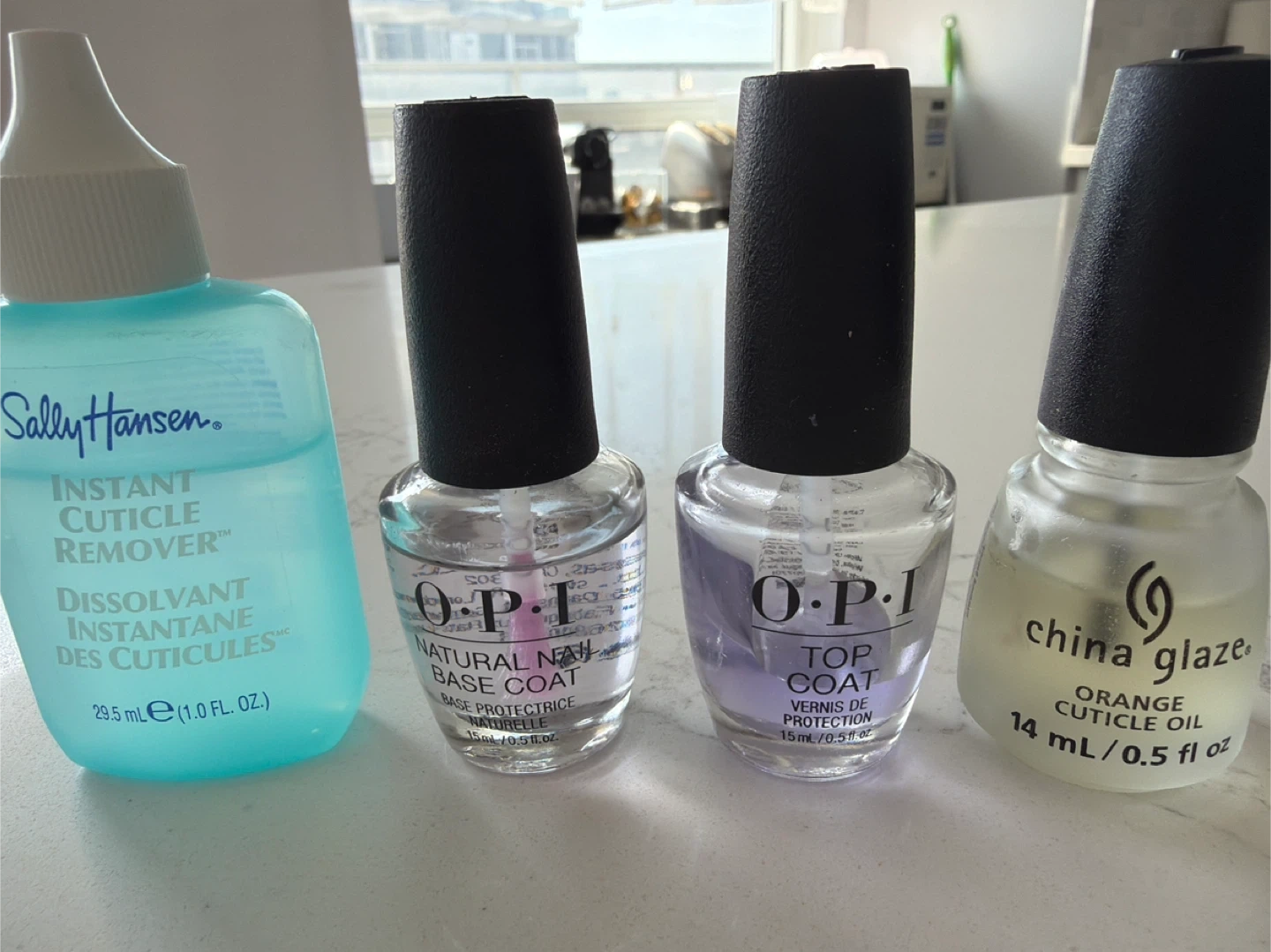 Includes Sally Hansen Instant Cuticle Remover OPI Natural Nail Base Coat, OPI Top Coat and China Glaze Orange Cuticle Oil. These nail care products help prepare and protect your nails.