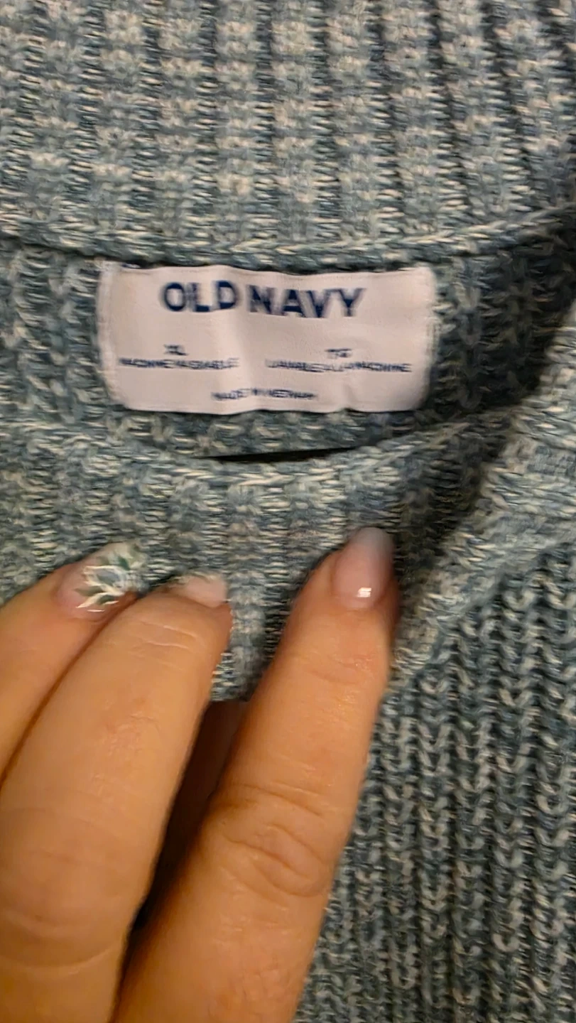 This marled knit sweater by Old Navy has a mock neck and long sleeves. It's a size XL and made from a soft, textured yarn. Perfect for a casual day out!