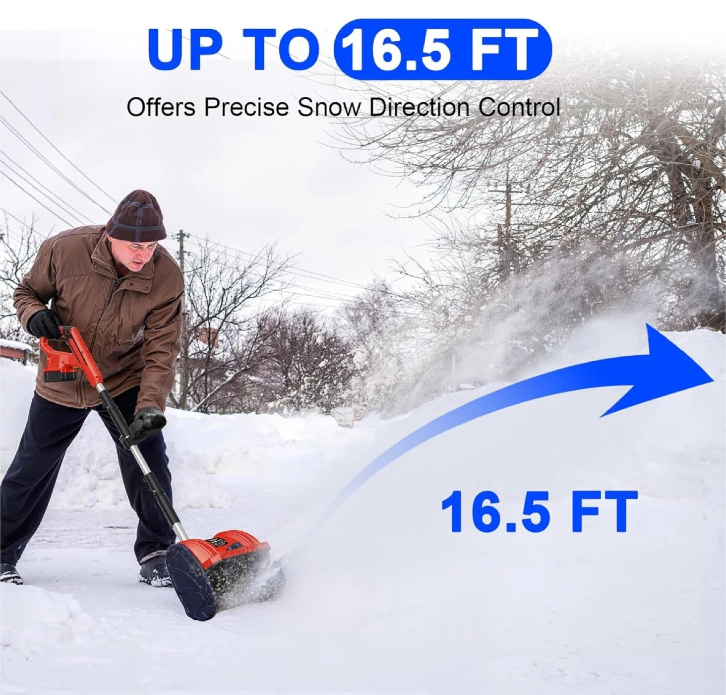 ✅ This powerful 12-inch cordless snow thrower clears up to 400 lbs of snow in just 2 minutes. Featuring an adjustable onboard blade, it offers precise snow direction control, throwing snow as far as 16.5 feet exactly where you want it.