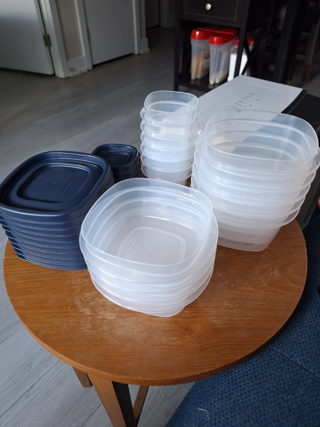 Set of assorted Rubbermaid food storage containers and lids. BPA free and top rack dishwasher safe. Microwave reheatable for convenience.