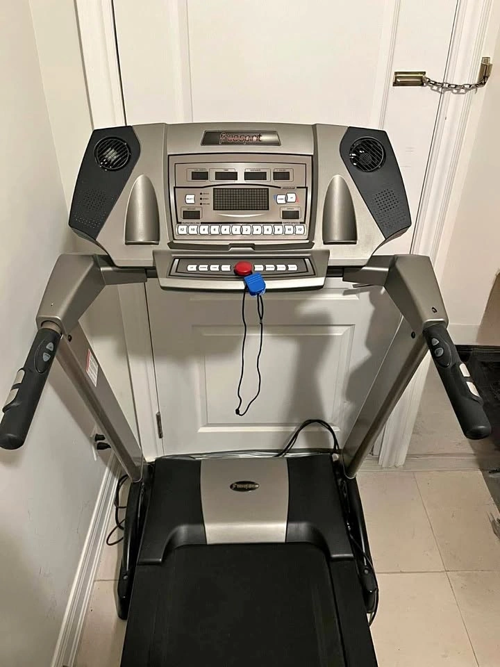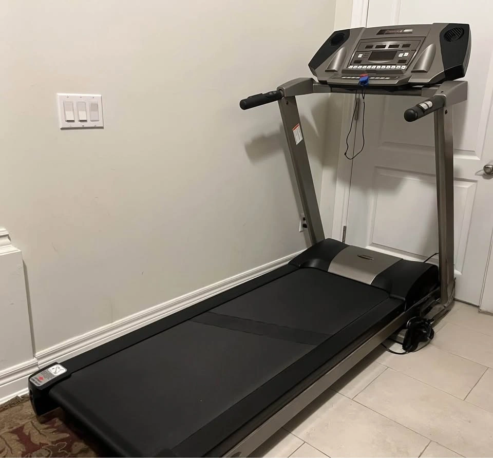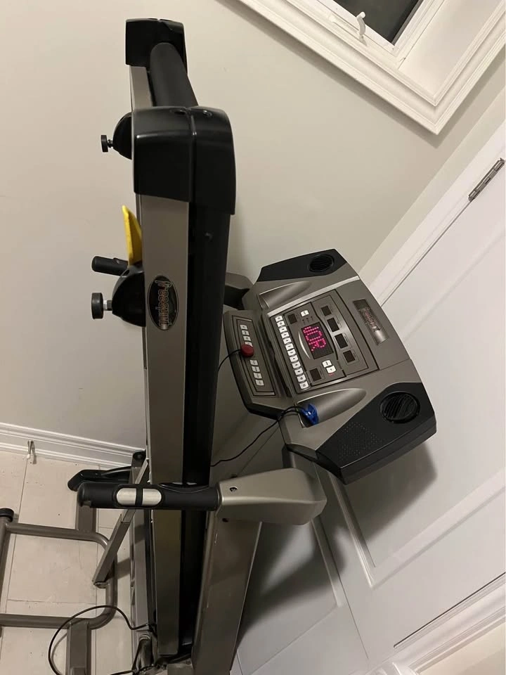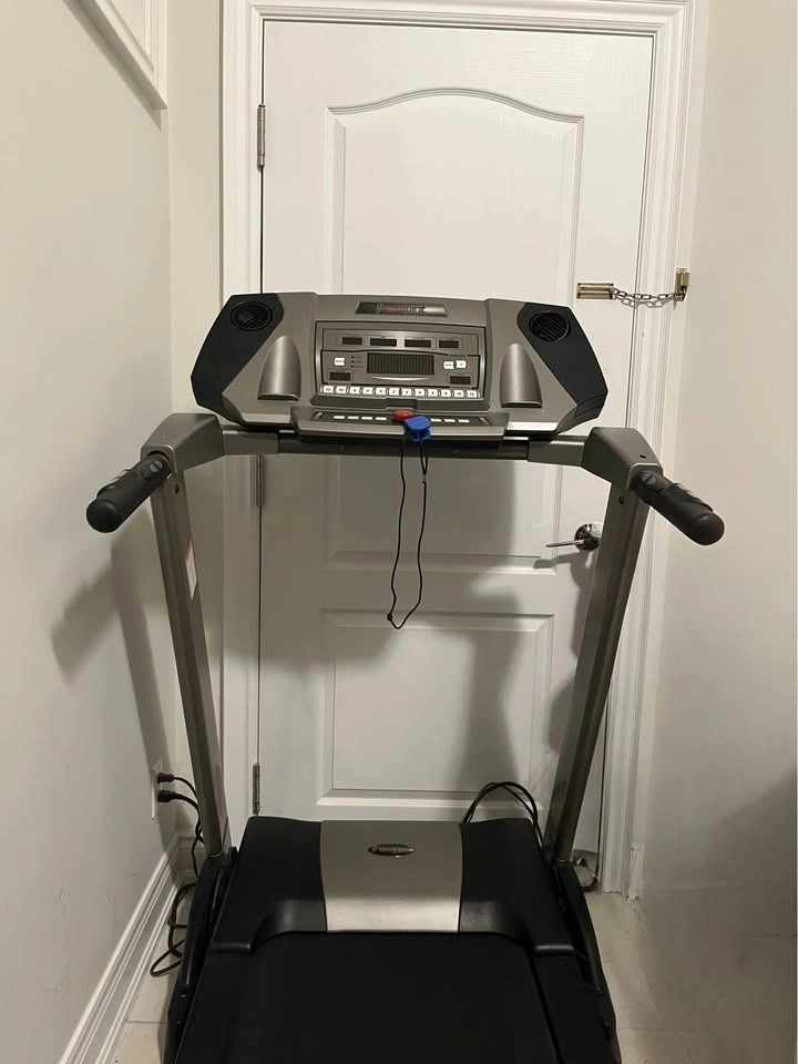 Free Spirit foldable treadmill. Counts calories, time, distance, and pulse. Safety feature fully intact. Works great and runs smoothly. Folds up easily for compact storage. Suitable for walking, jogging, or running. Well maintained and ready to use. Pickup near Islington Subway Station.