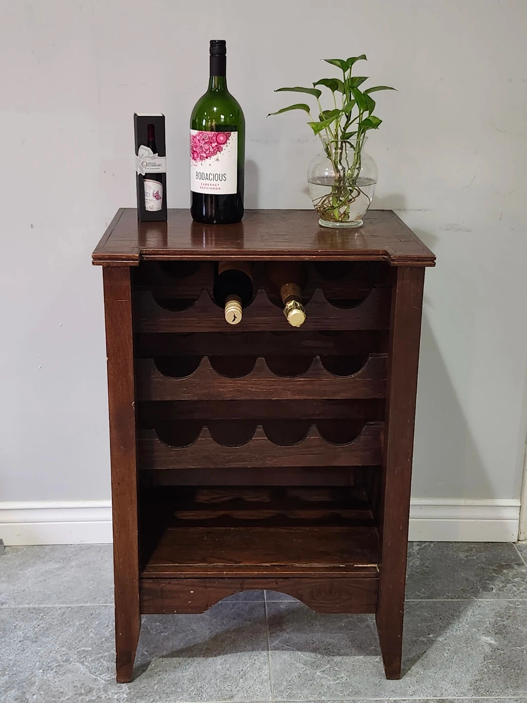 Sturdy real wood wine rack, can hold up to 12 bottles, still in pristine condition.