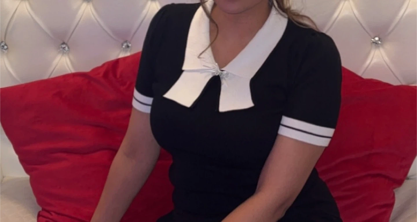 Classic short-sleeve shirt dress featuring a crisp white Peter Pan collar with a decorative bow. It has white stripes on the cuffs. Offers a flattering silhouette for various occasions.