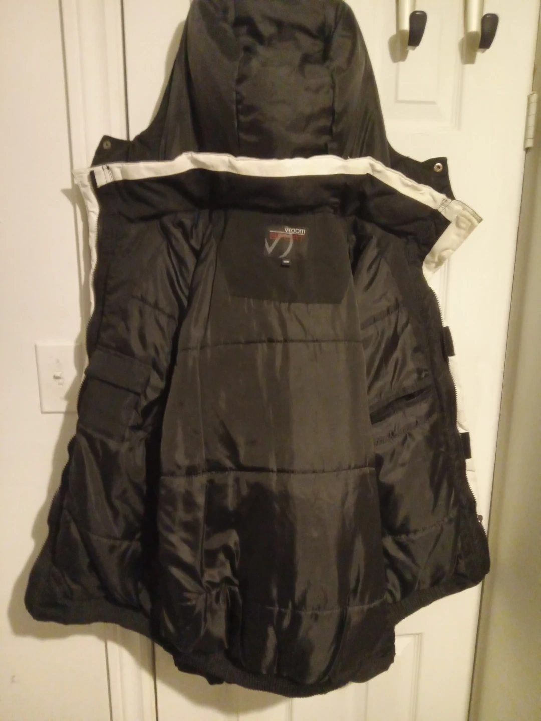 Serious people only. Black and white womens Vicom V2 jacket. Insulated lining with interior pockets. Hood is detachable. Super warm sport winter jacket for women. Size is medium.