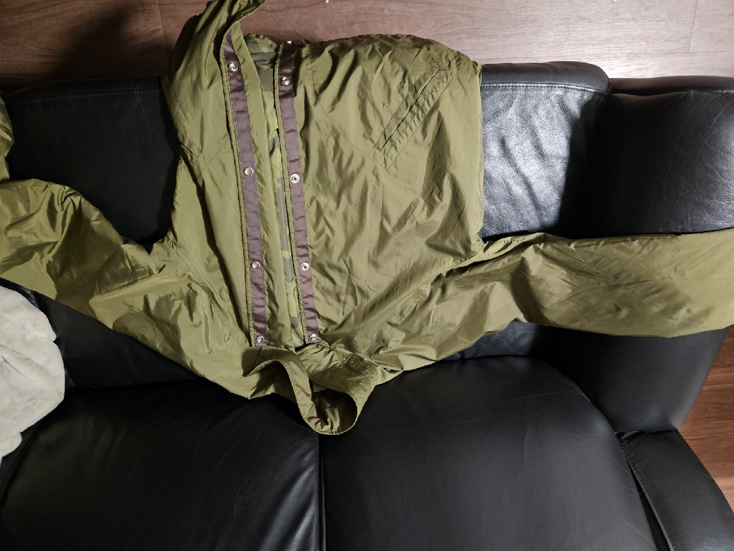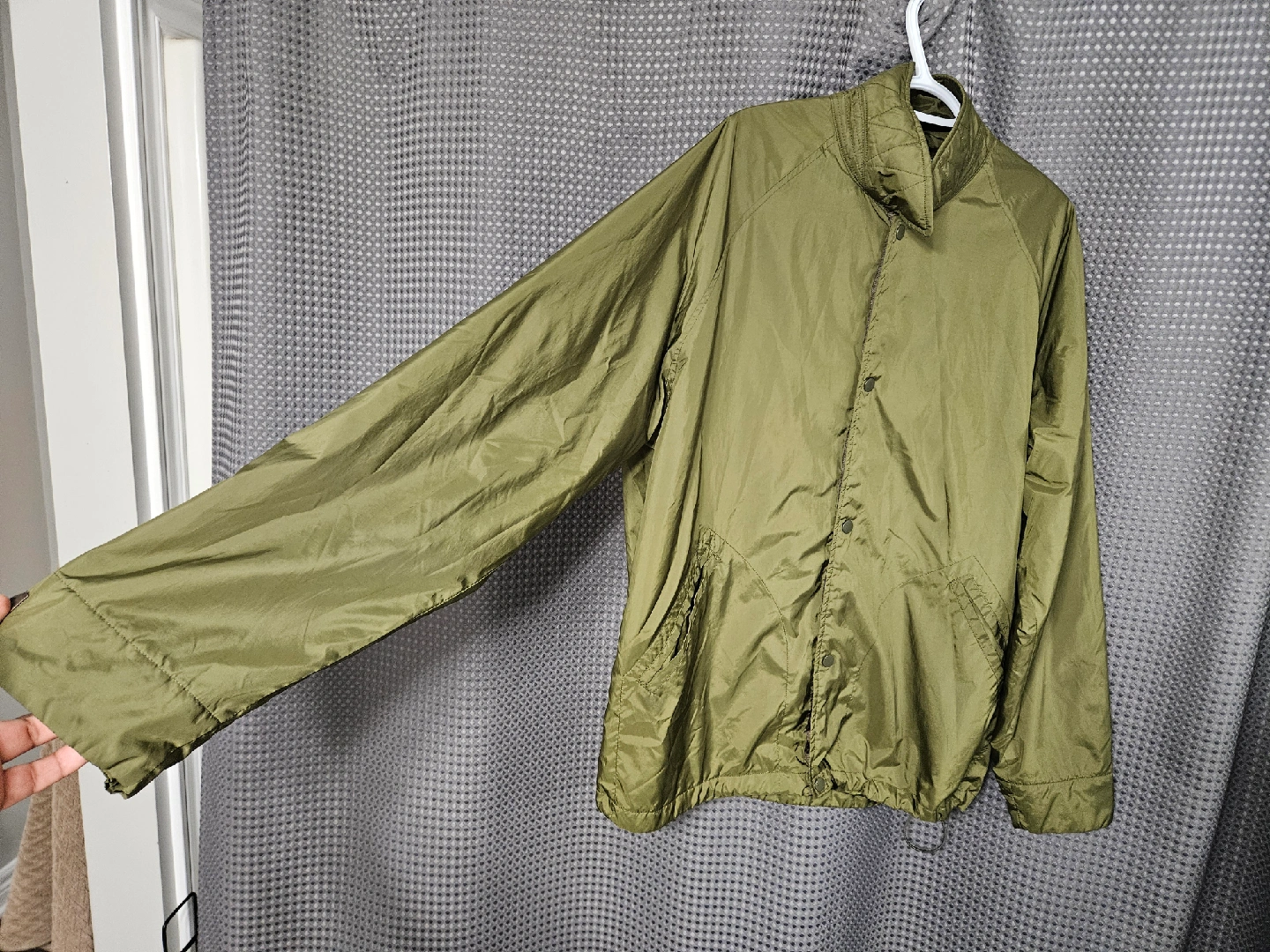 bomber style , olive green jacket, camo internal lining. and adjustable weist. smoke and pet free home . Cash only