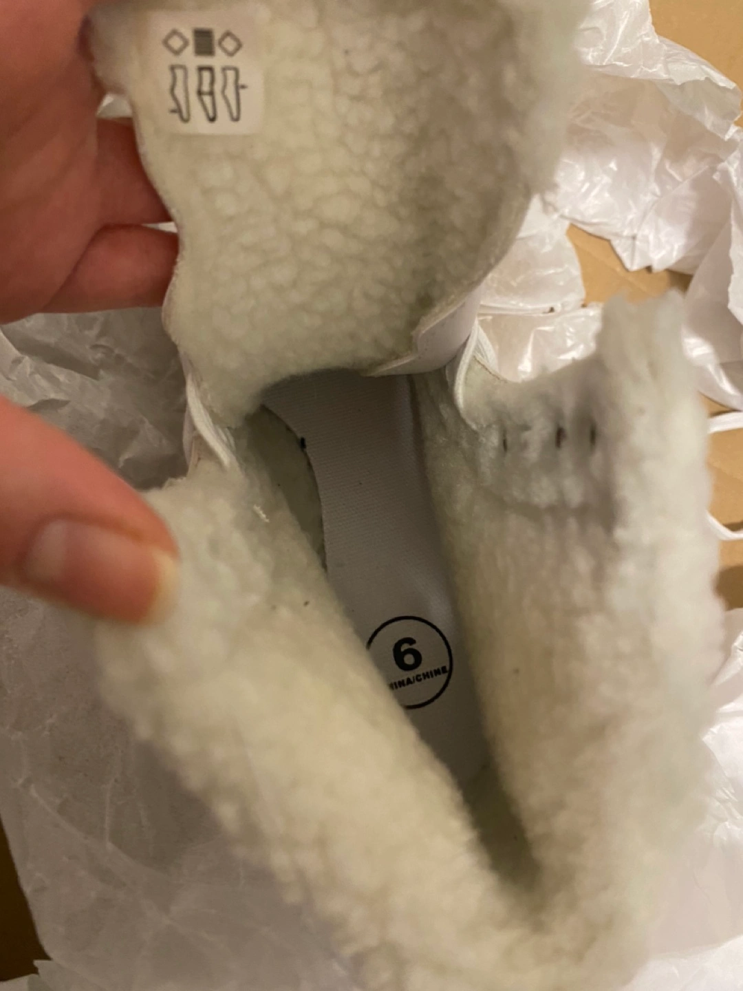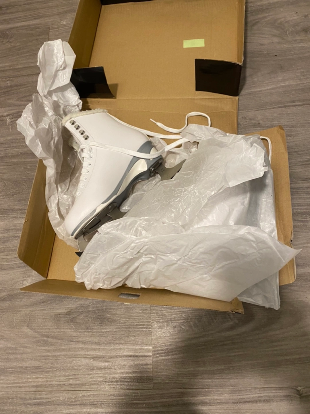5White figure skates with grey accents. Size 6. New in box. Warm fleece lining.