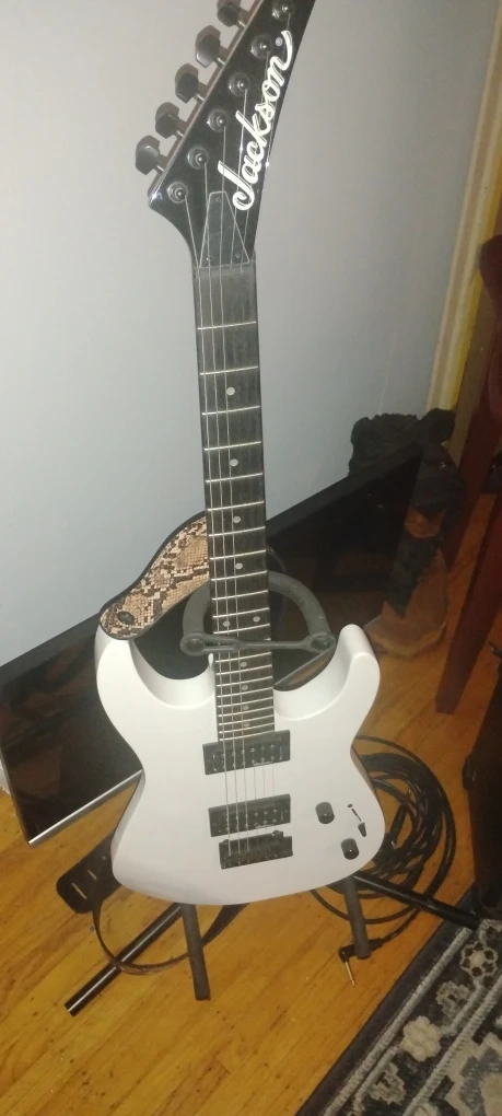 10Selling a Jackson electric guitar in white. It's in good condition and ready for a new home. Perfect for someone looking to upgrade their instrument or start playing