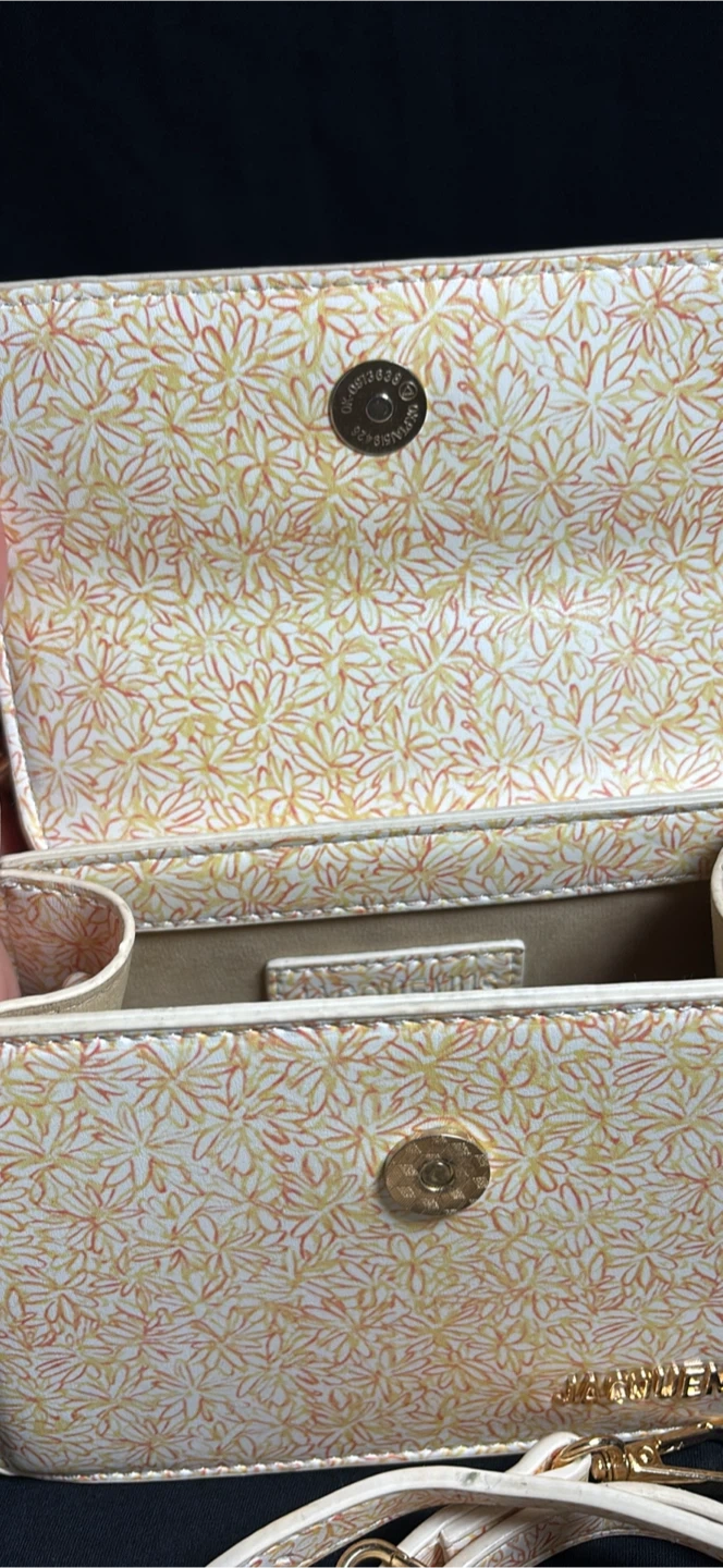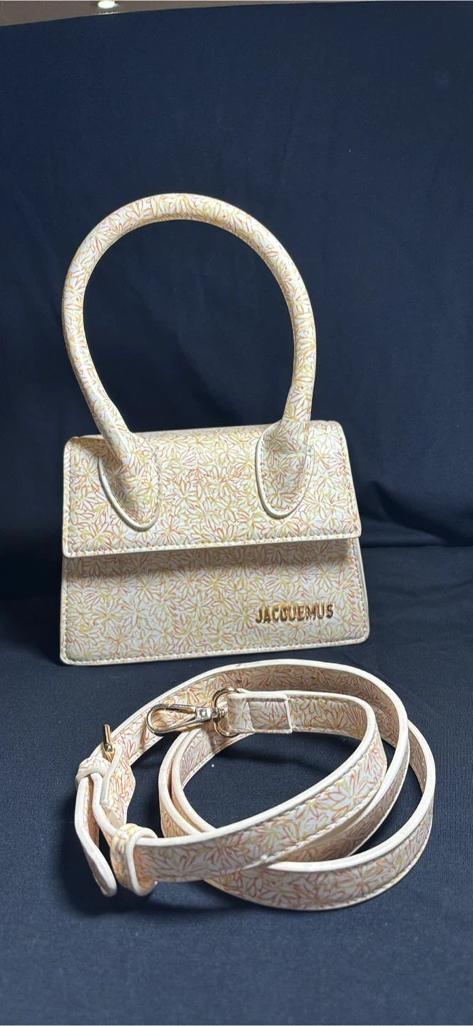 Selling a beautiful Jacquemus Le Chiquito top handle bag! This stylish bag features a unique floral pattern and comes with a detachable shoulder strap. Perfect for adding a touch of elegance to any outfit!