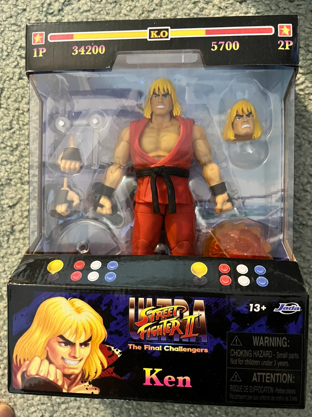 10Selling a Jada Toys Ultra Street Fighter II: The Final Challengers Ken action figure! It's suitable for ages 13 and up and comes in the original box