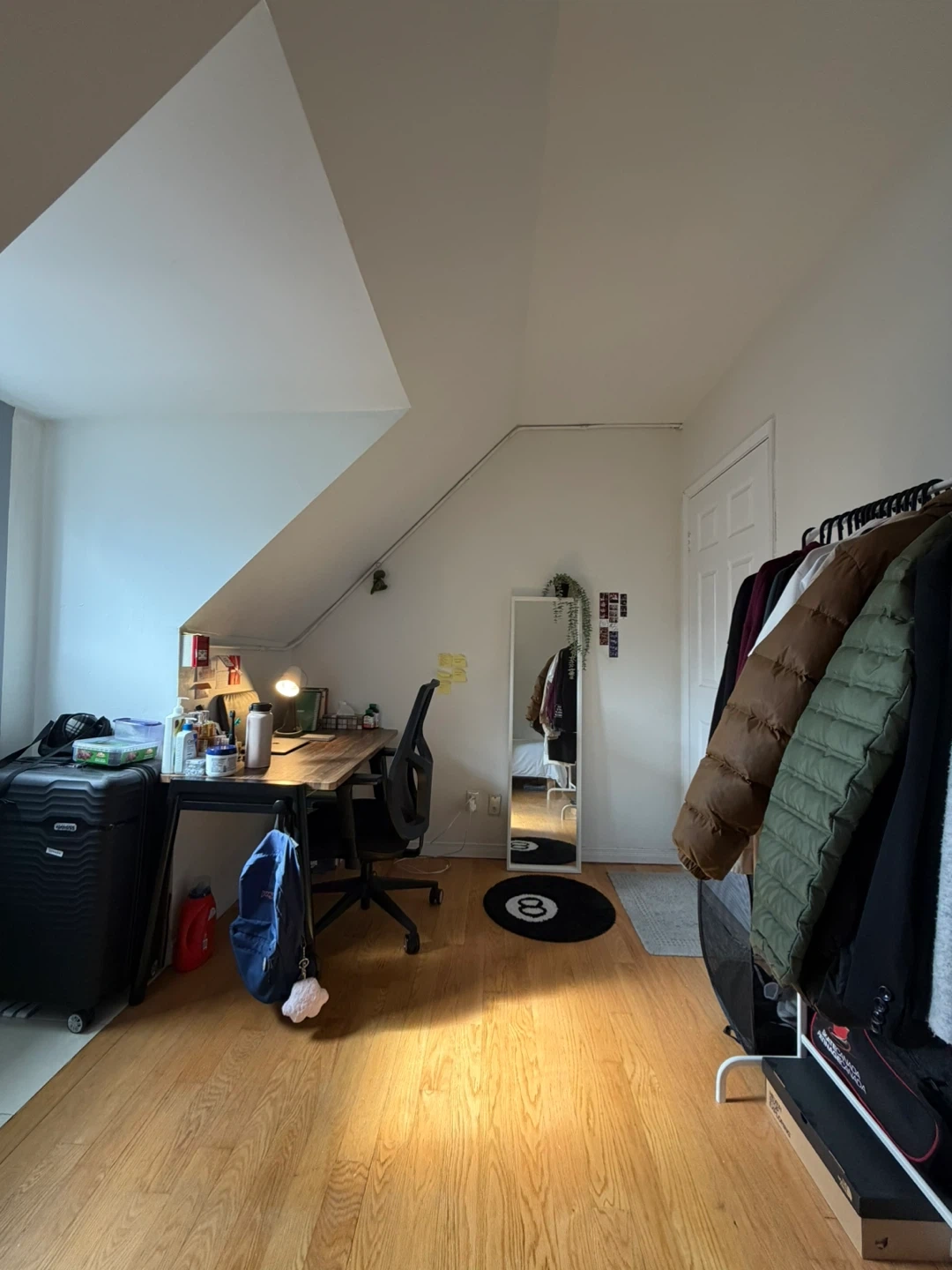 - Fully furnished: Includes a bed, desk, chair, and storage.