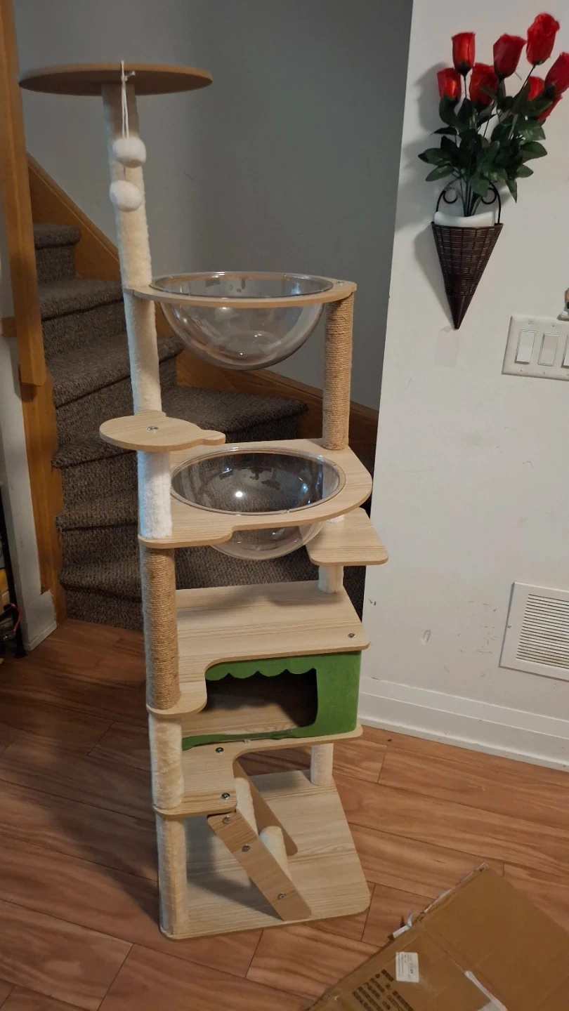 Cat tree is new and not used at all. Assembled to take photo. Can assemble or disassemble