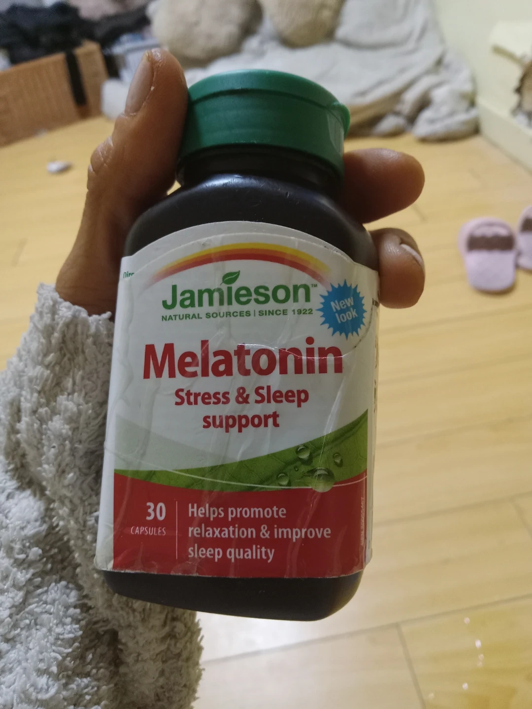 15I'm selling a bottle of Jamieson Melatonin Stress & Sleep Support capsules. Each bottle contains 20 capsules. It helps promote relaxation and improve sleep quality. It's from a natural source.