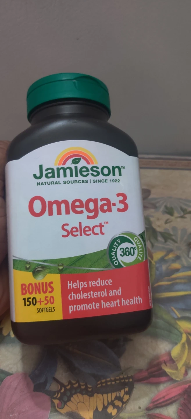 1000+Selling a bottle of Jamieson Omega-3 Select softgels. The bottle contains 200 softgels (150 + 50 bonus). Helps reduce cholesterol and promote heart health.