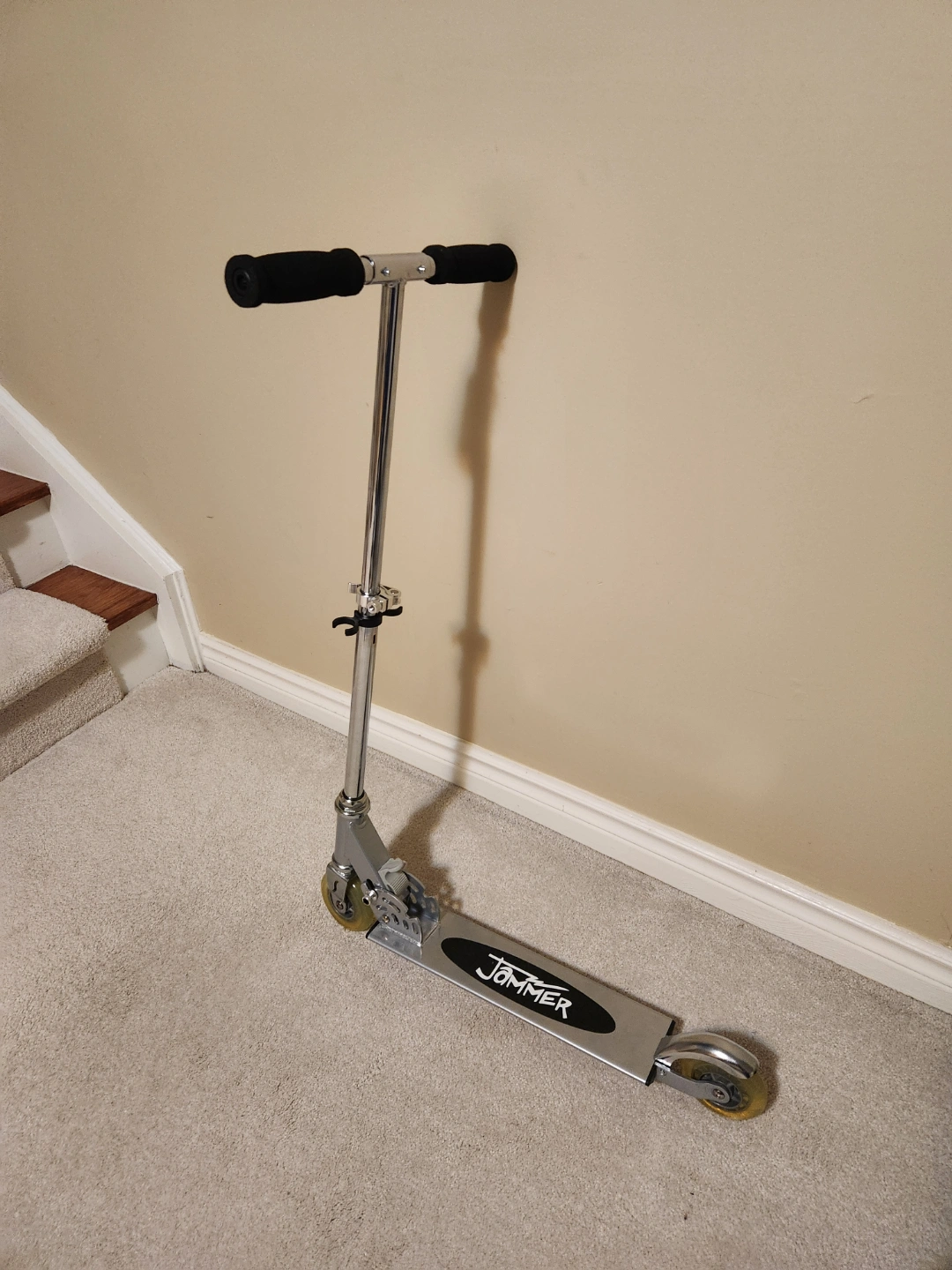 Chrome finish scooter. Adjustable handlebars. Max weight 80 kg. Almost new condition.