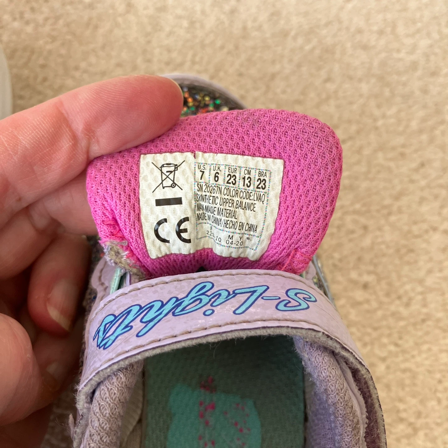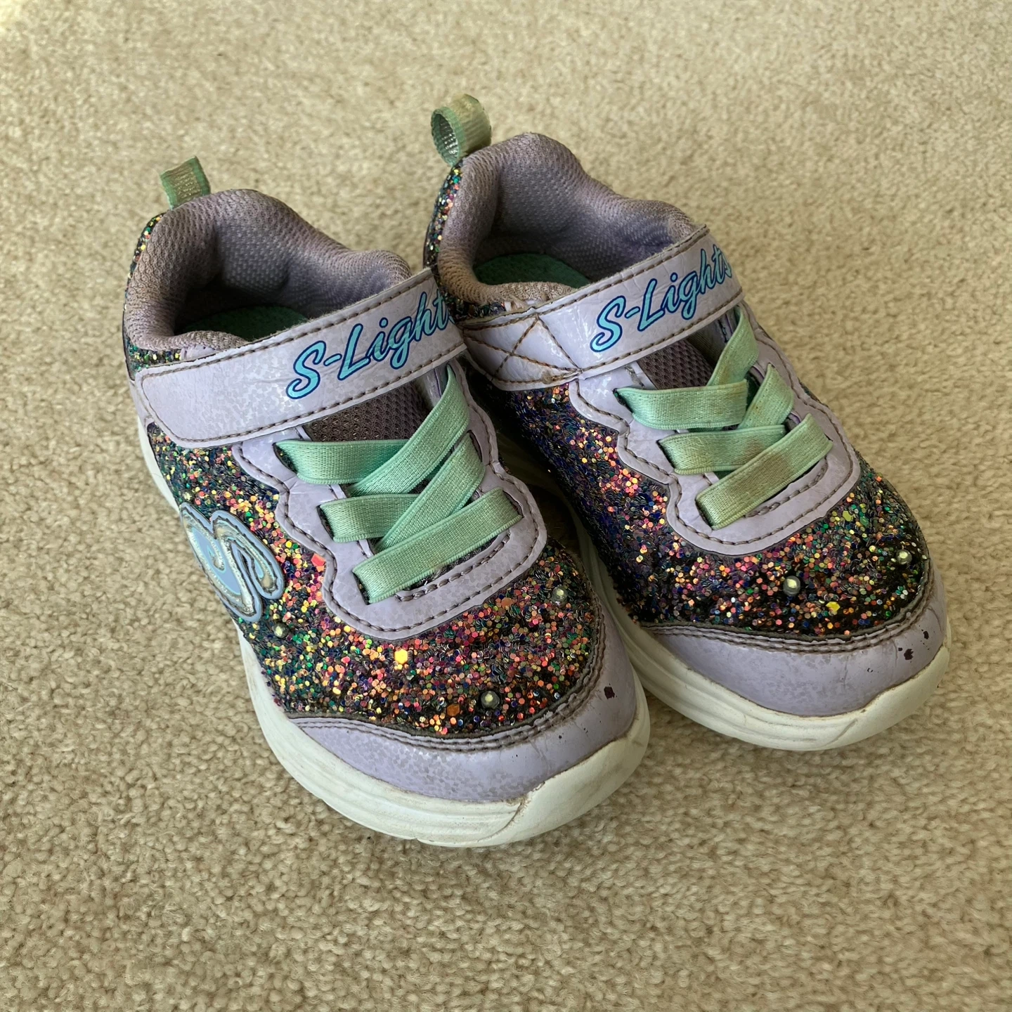 Very sparkly Skechers S-Lights toddler sneakers! 7 of the 8 lights in great working order, the last one works periodically….