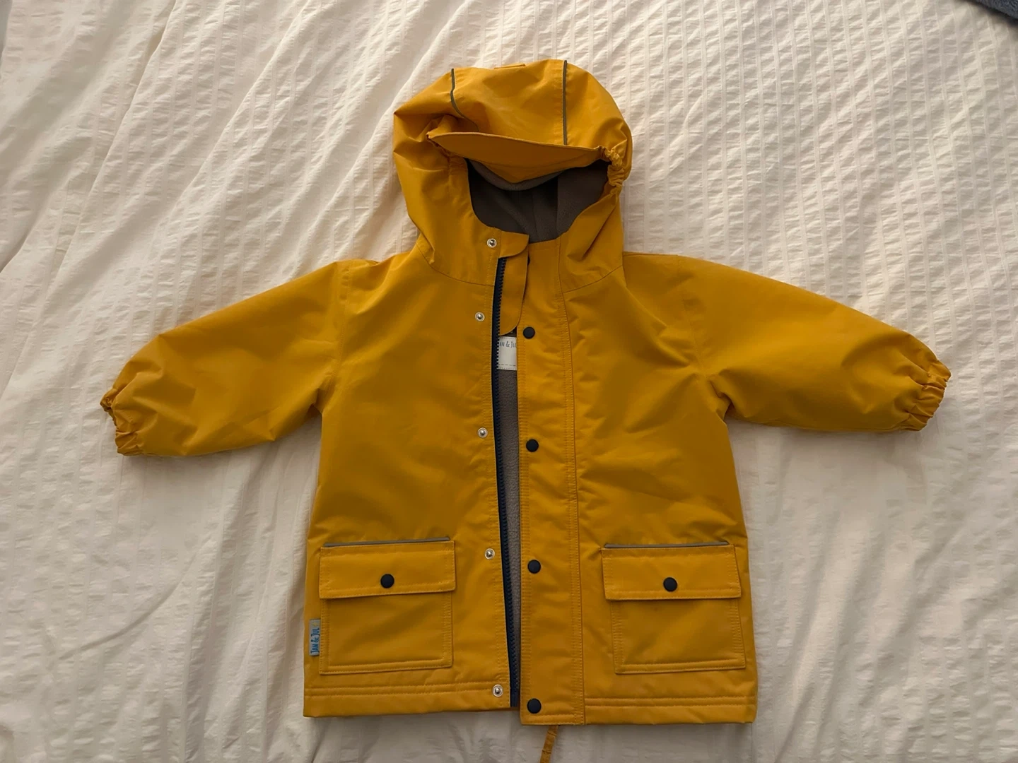 This Jan & Jul raincoat is perfect for keeping your little one dry on rainy days! It's a bright yellow colour and size 2T. It's in great condition and ready for a new home!