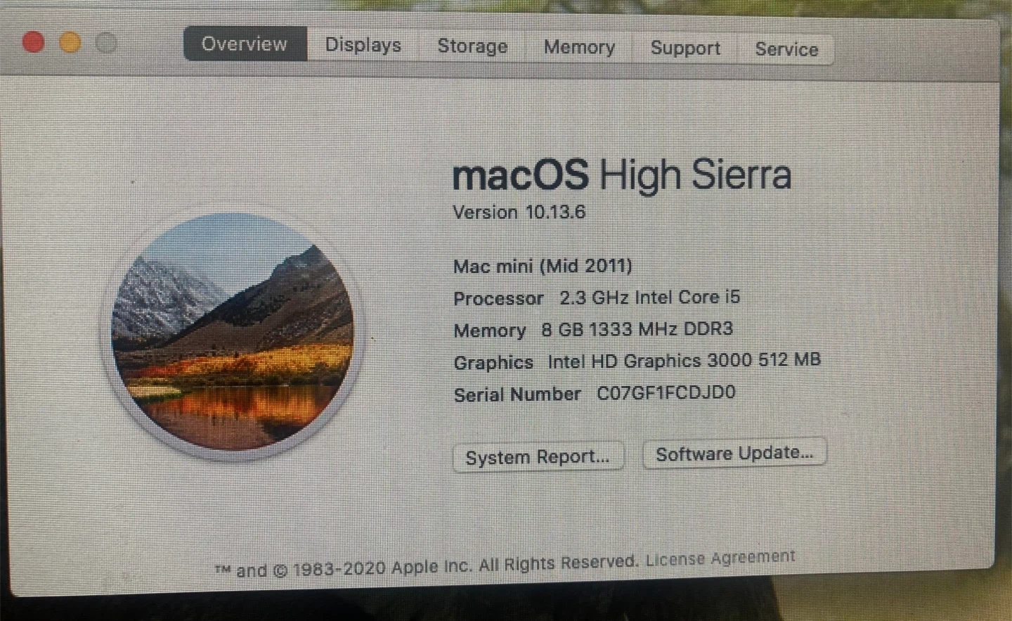 Selling an Apple Mac Mini (Mid 2011) with an Apple Cinema Display (20-inch). The Mac Mini has a 2.3 GHz Intel Core i5 processor, 8 GB of 1333 MHz DDR3 memory, and Intel HD Graphics 3000 512 MB. It also has a 500 GB SATA Disk. The Apple Cinema Display is a 20-inch (1680 x 1050) display with Intel HD Graphics 3000 512 MB graphics. Without a mouse π Pick up only