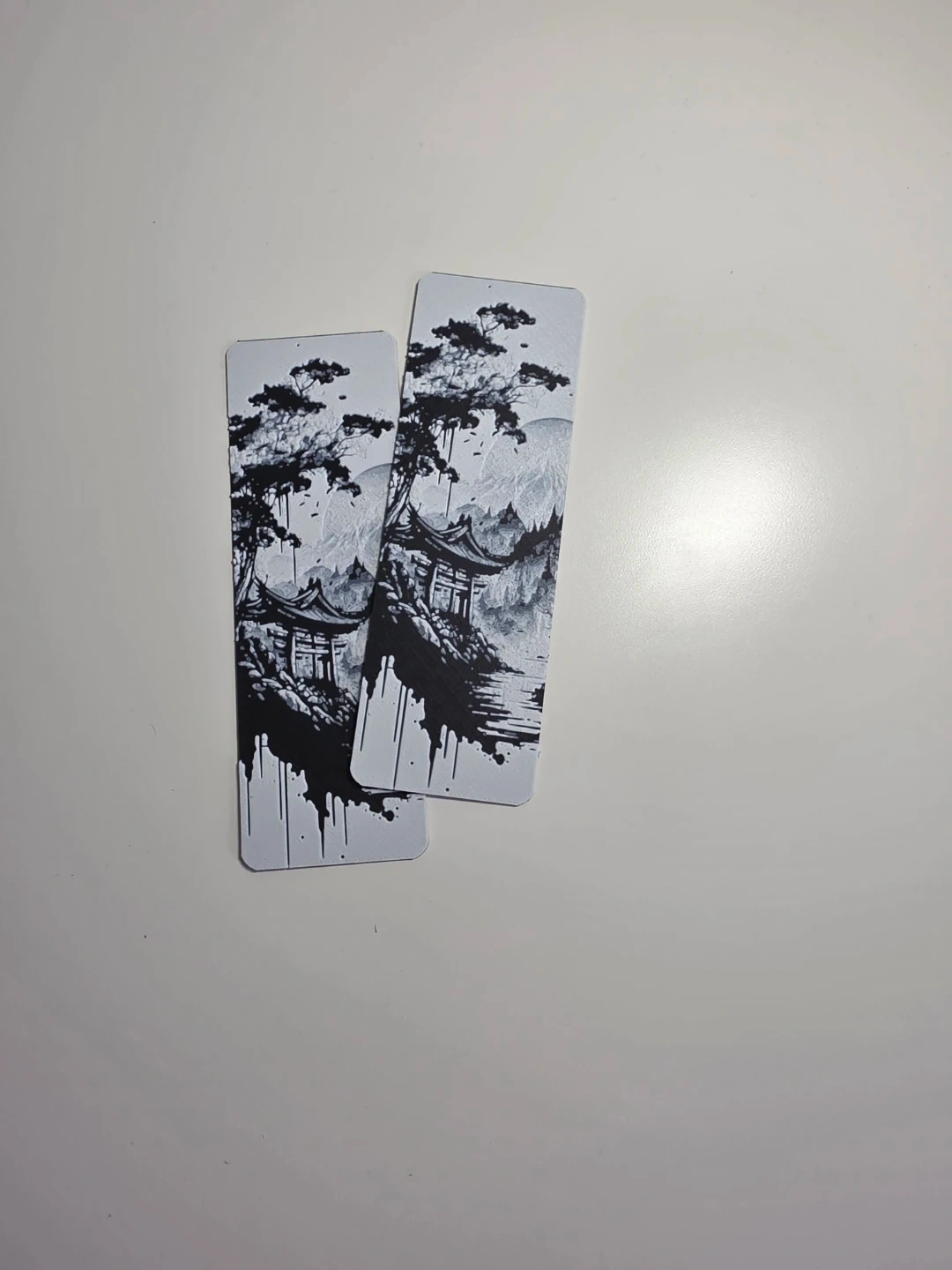60Selling decorative bookmarks. These bookmarks feature a unique black and white design of a traditional Japanese landscape with temples and mountains. 3 in stock