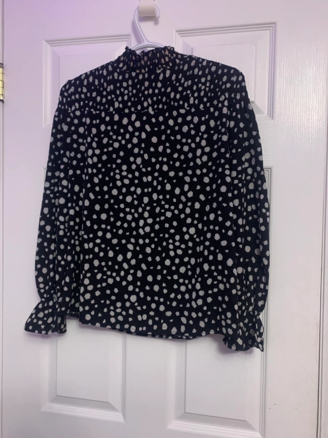 SHEIN Black & White Polka Dot Long Sleeve Top - Size XS