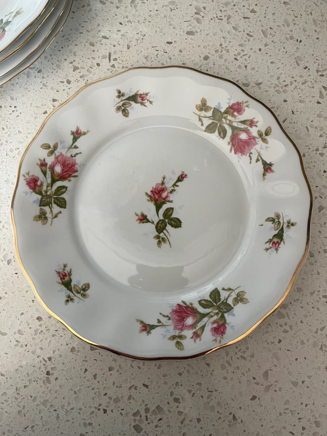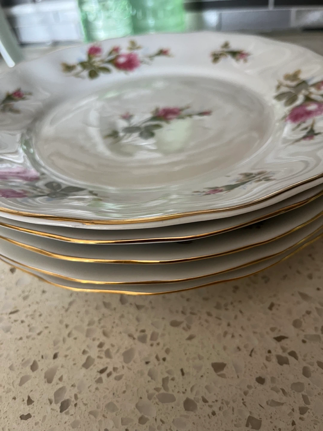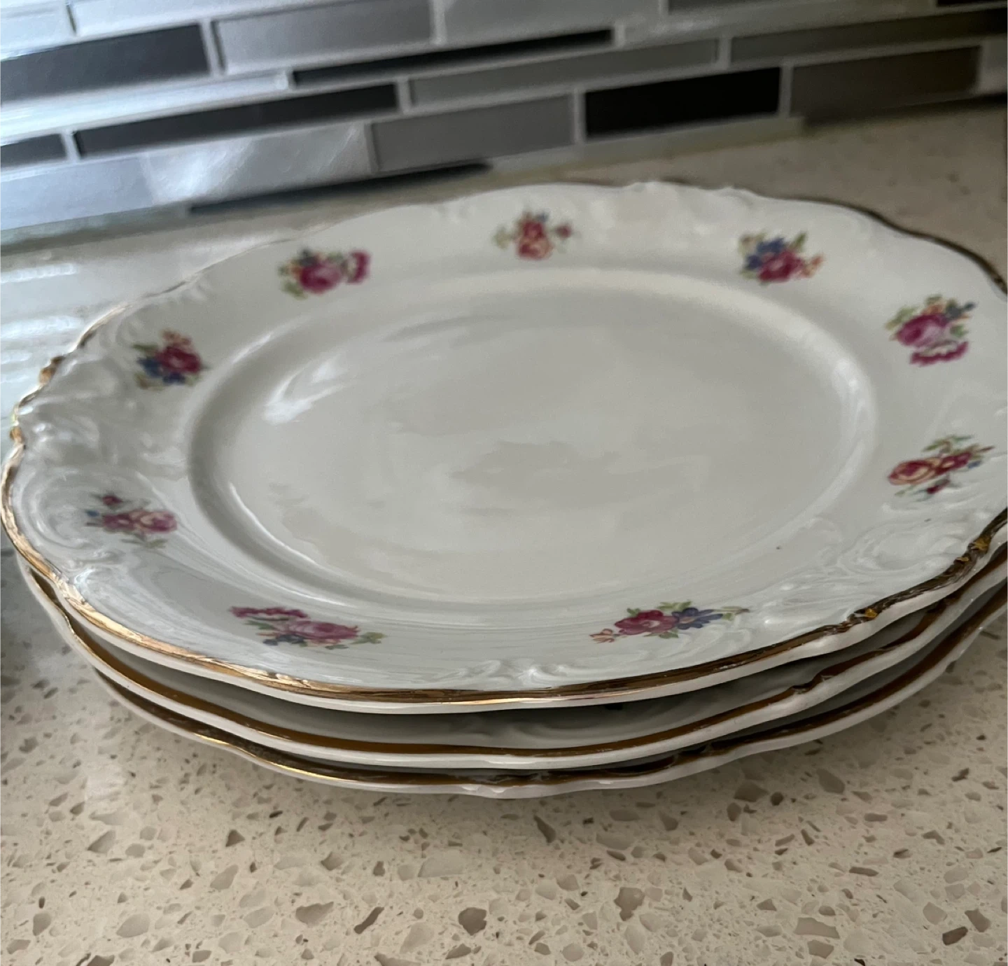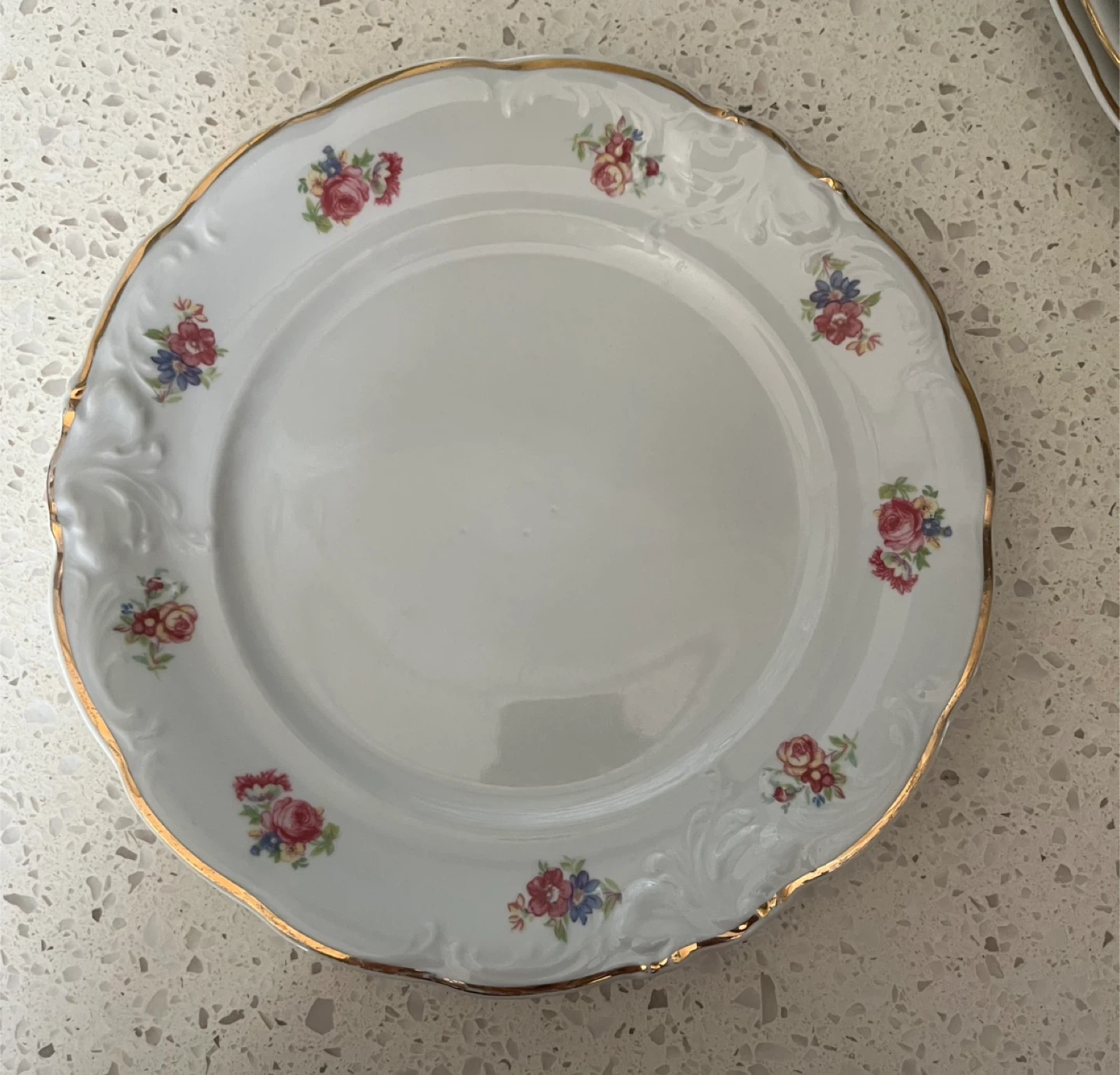 30Selling a set of 8 plates from Jawolina and Wawel, both made in Poland. They have a beautiful floral design with gold trim. Perfect for adding a touch of elegance to your table!