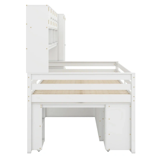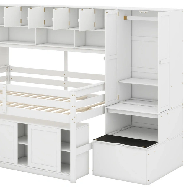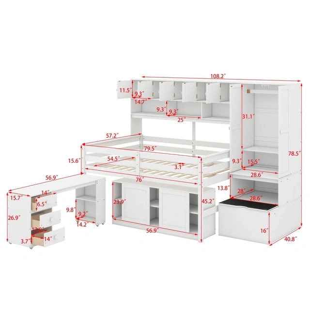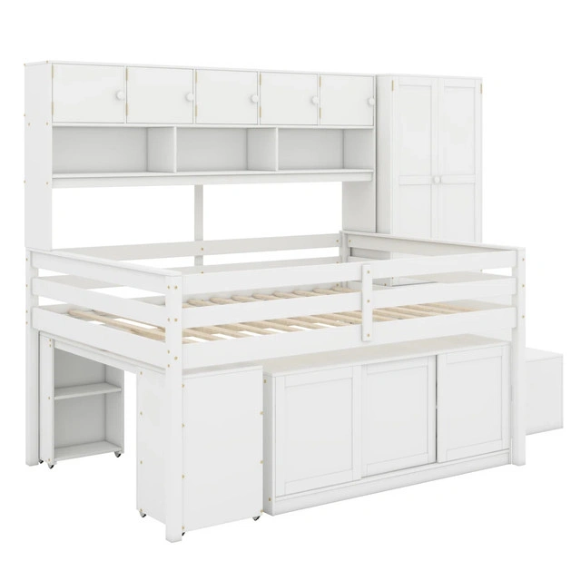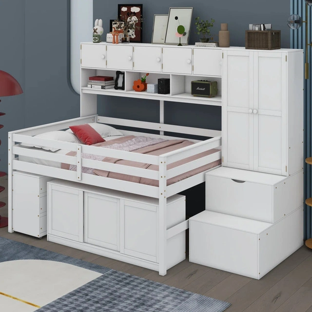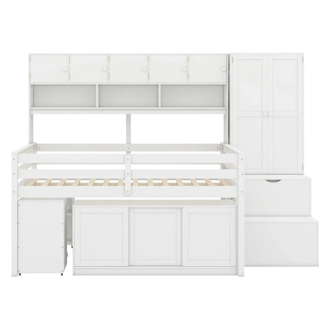 50Jawonna Wooden Loft Bed With Under-Bed Desk, brand new in box (BNIB), never used. Full Size, white. Retails for $1700+tax. Includes guardrails, desk, bookcase, cabinets, drawers, built-in stairs, slat kit, and shelves. *4 boxes* likely need a large SUV or truck