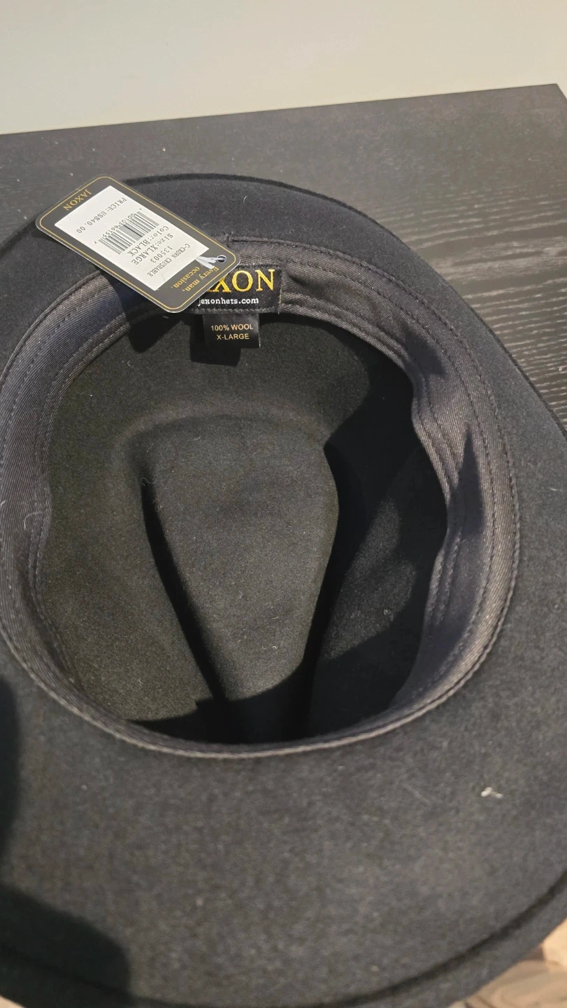 60Selling a Jaxon Hats crushable wool fedora in black, size X-Large. It's in great condition and made of 100% wool. Perfect for any occasion!