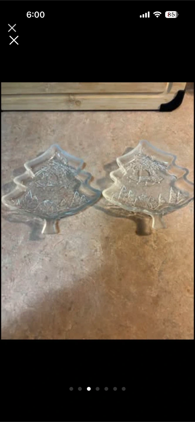 This set includes two clear glass dishes shaped like Christmas trees and two rectangular dishes . Please check photos for measurements . They're great for holding small holiday treats or decorations!smoke free pet free home .pick up 551 Emerson street. Coquitlam. Cash only . No delivery. No e-transfer.