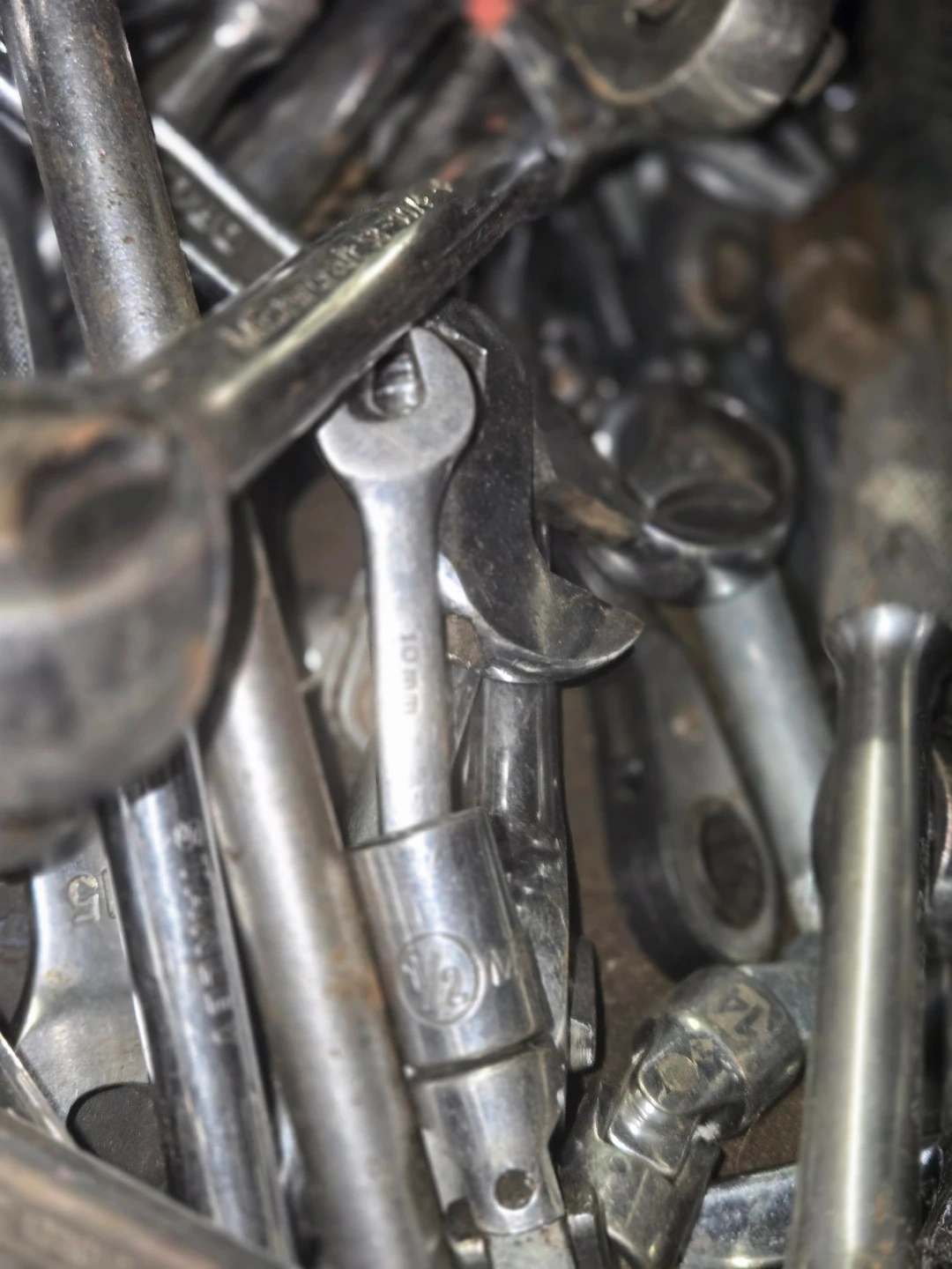 This is a collection of various hand tools, including screwdrivers, wrenches, pliers, and sockets. The tools appear to be from different brands and They're ready for your next project! Let me know what you need thx fcfs.