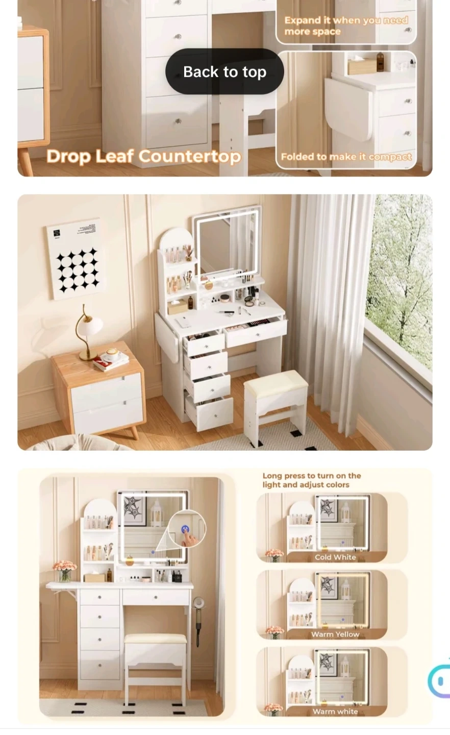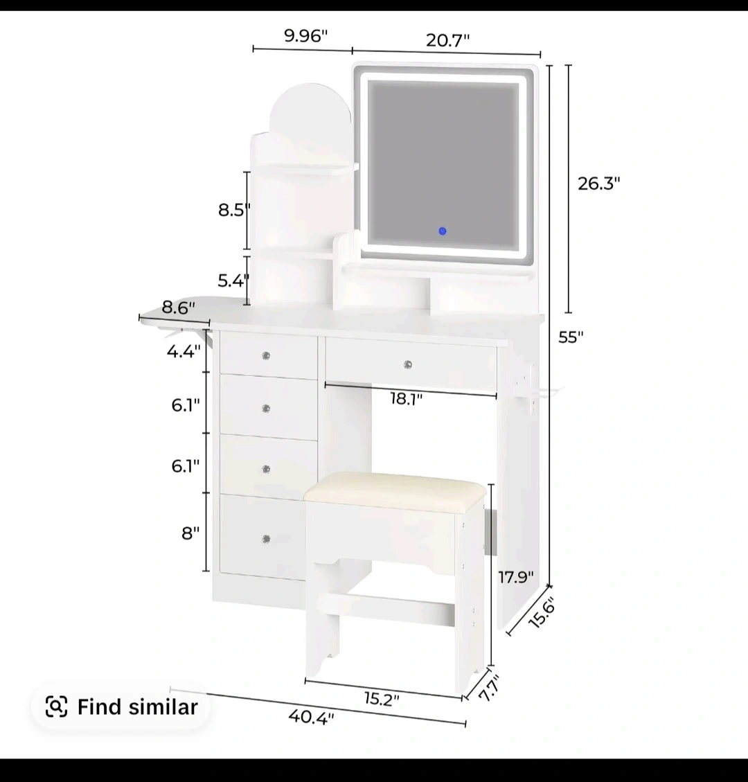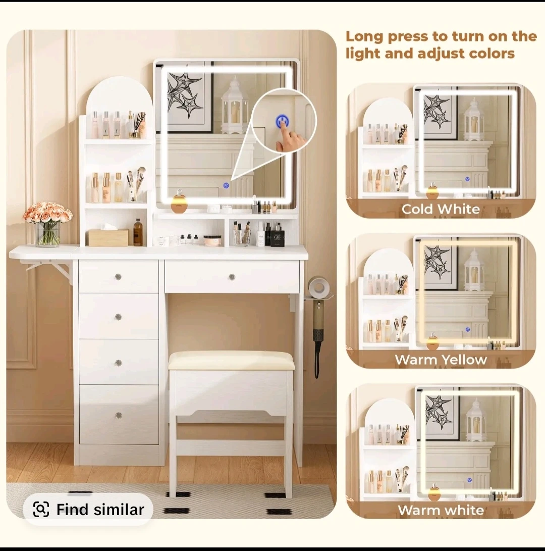 White Vanity Dressing Table Set with LED Mirror and Stool🏆