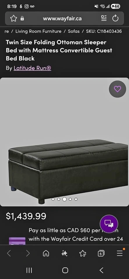 Twin Ottoman Pullout Bed (Grey)