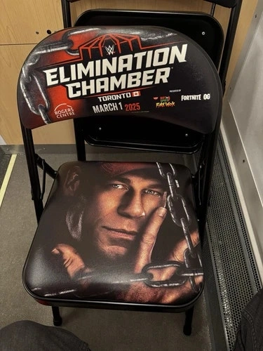 WWE Roadblock 2016 chair (event originally called "March to Wrestlemania") - $400. SummerSlam 2019 chair - $500. Elimination Chamber 2023 chair - $500. Elimination Chamber 2025 chair - $750. All are used but in like-new condition. Sports collectibles.
