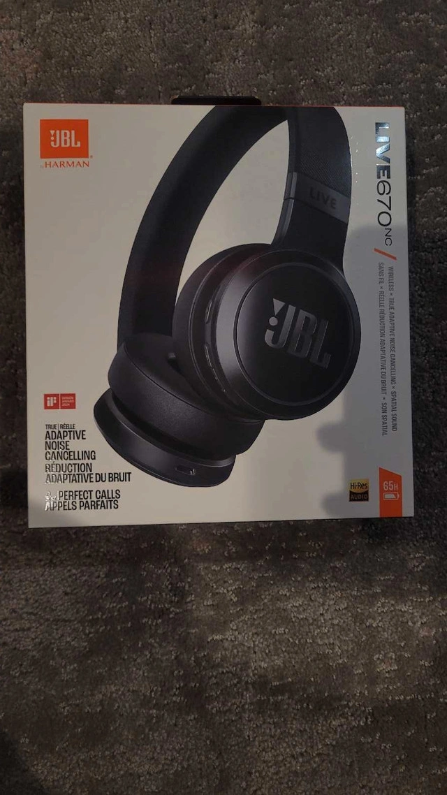 10Selling a pair of new JBL Live 670NC noise cancelling headphones. These headphones boast adaptive noise cancellation and deliver pure bass and exceptional call quality, perfect for immersive listening. Specifications include: Condition: New For Sale By: Owner Cash accepted.