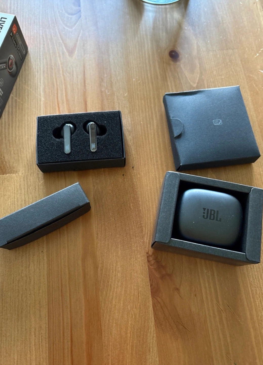 I am offering a pair of black JBL Live Pro 2 TWS earbuds. The earbuds come with a charging case. They offer adaptive noise cancelling and wireless charging. These earbuds will bring peace to your day when you are listening to your favourite music.