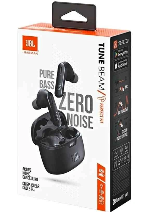 89JBL Tune Beam True Wireless Noise Cancelling Earbuds. The earbuds feature Active Noise Cancelling and JBL Pure Bass Sound. They are water and dust resistant with an IP54 rating. The earbuds and charging case provide up to 48 hours of battery life. The earbuds are equipped with 4 microphones for clear calls.