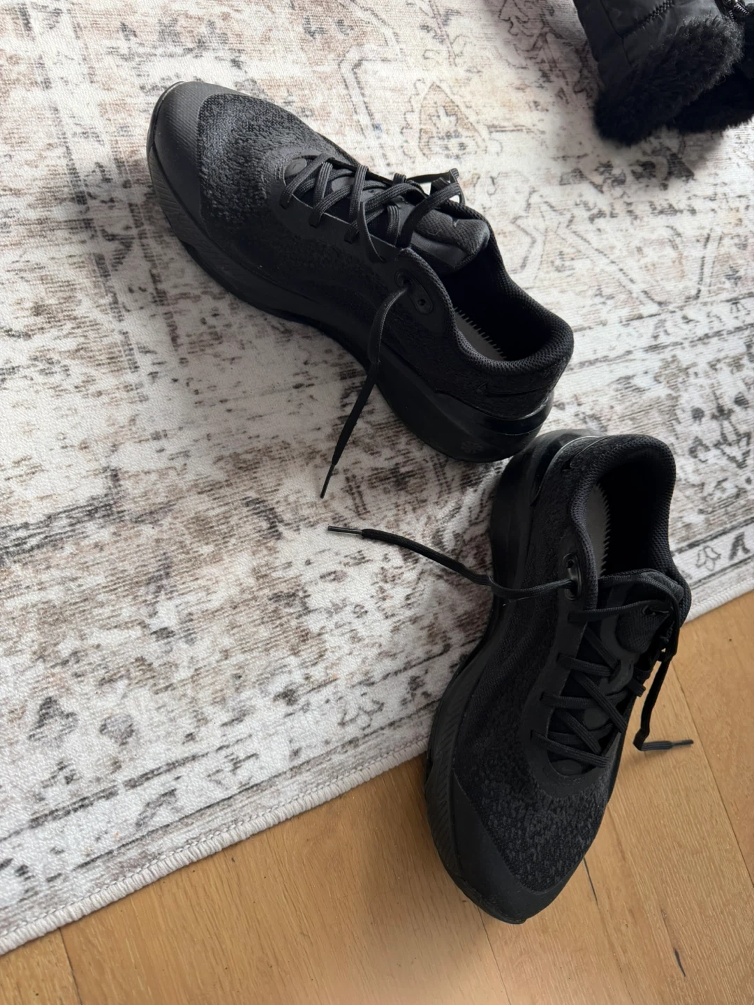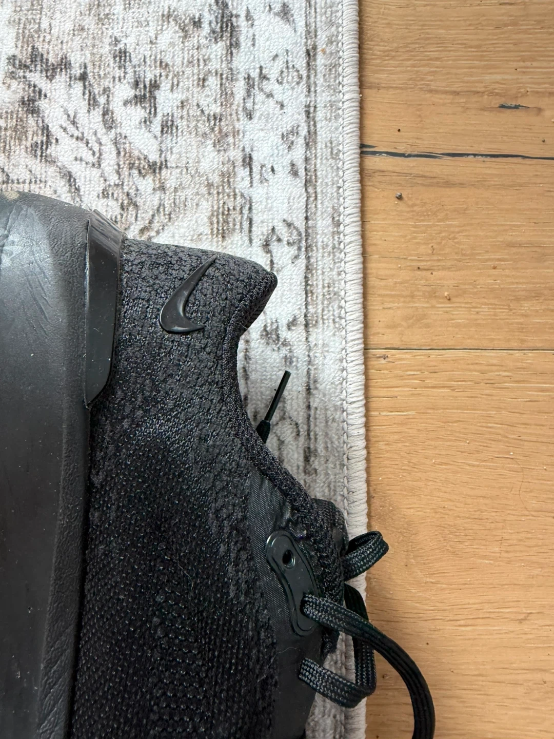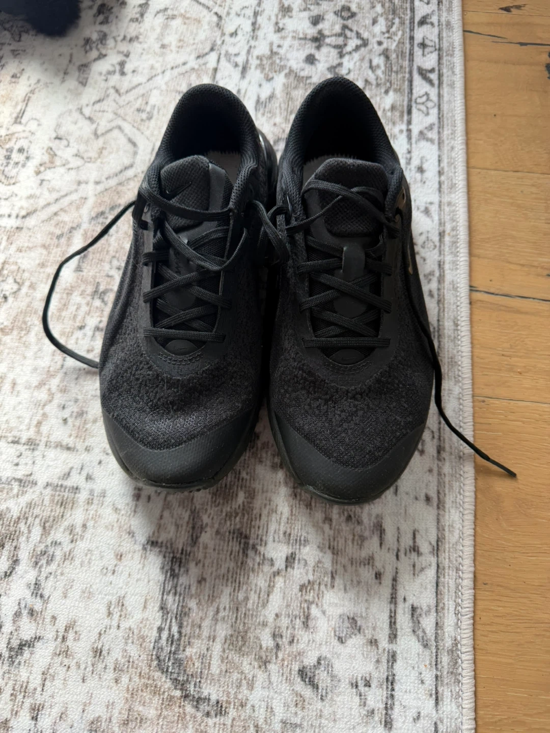 These black Nike Air Zoom running shoes are designed for comfort and performance. They feature a breathable mesh upper and responsive cushioning. These shoes are great for everyday wear or for hitting the pavement for a run! Size 7. They are a tighter fit.