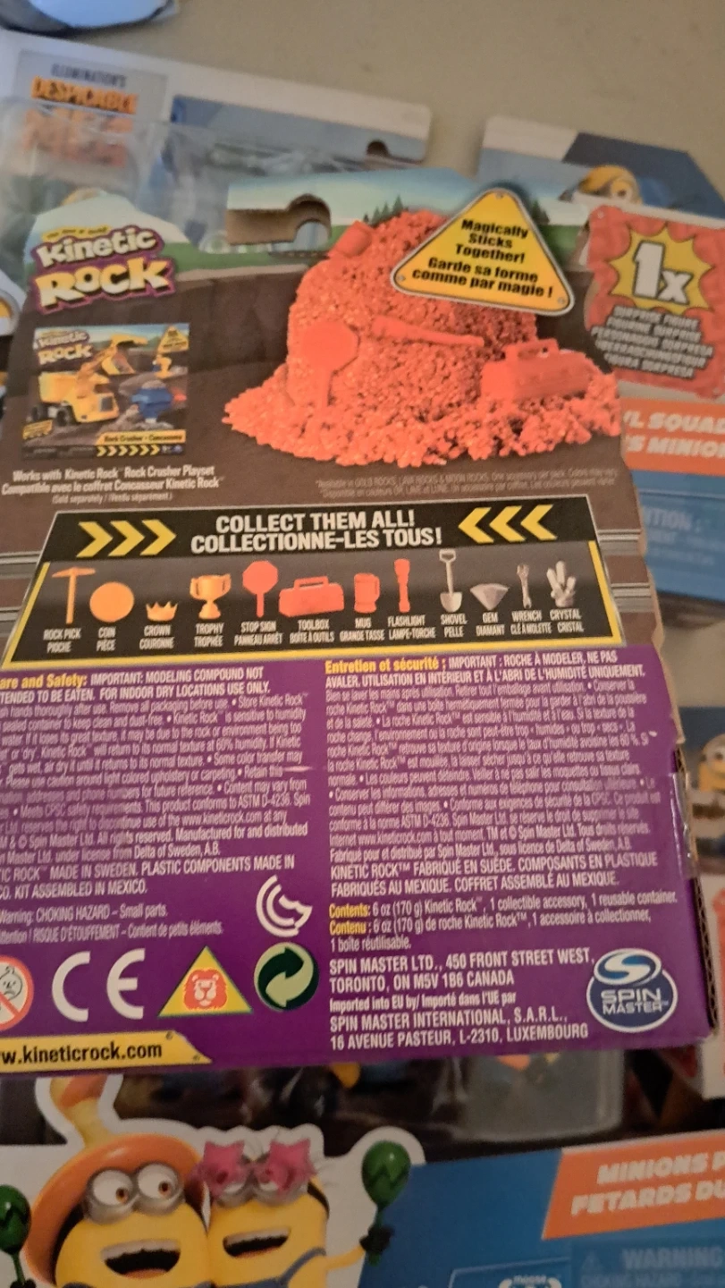 Includes one 6 oz (170 g) container of Kinetic Rock. It's made with real rock and magically sticks together. Find your hidden treasure!