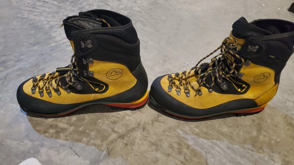 Selling a pair of La Sportiva Nepal EVO GTX mountaineering boots. They are a size 46, which converts to a US size 12.5. These boots are ideal for mountaineering and feature a durable construction and excellent support. The outsoles are made by Vibram.