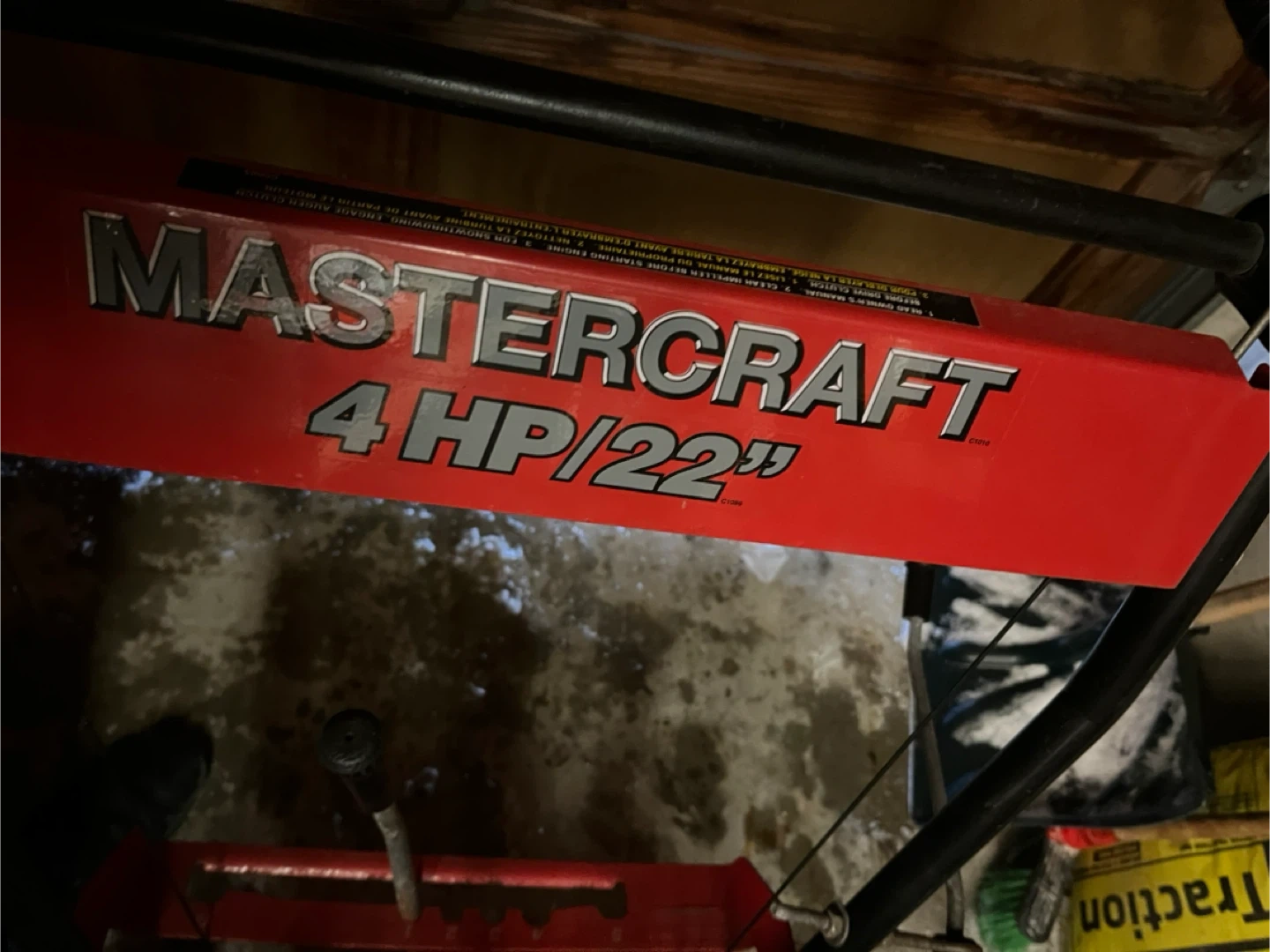 This is a Mastercraft Snow King snowblower. It's a 4 HP model with a 22-inch clearing width.