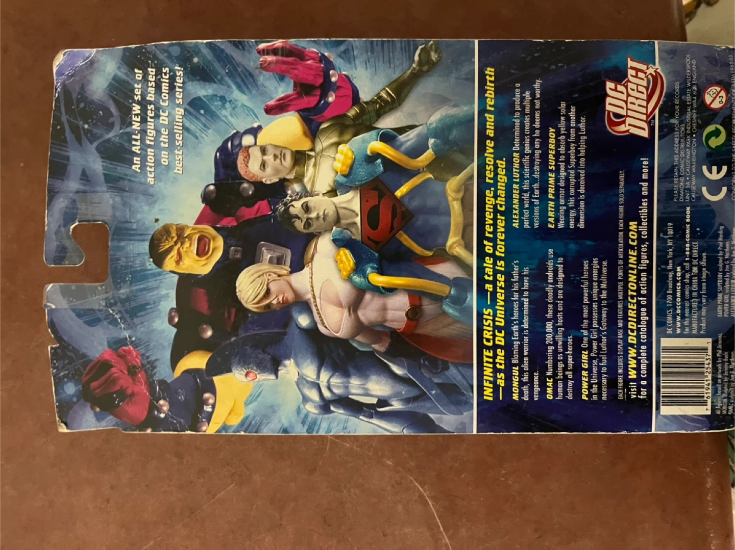 This is a DC Direct action figure from the Infinite Crisis series, featuring Earth Prime Superboy. It's part of a best-selling series of action figures based on DC Comics. This collectible comes in its original packaging.