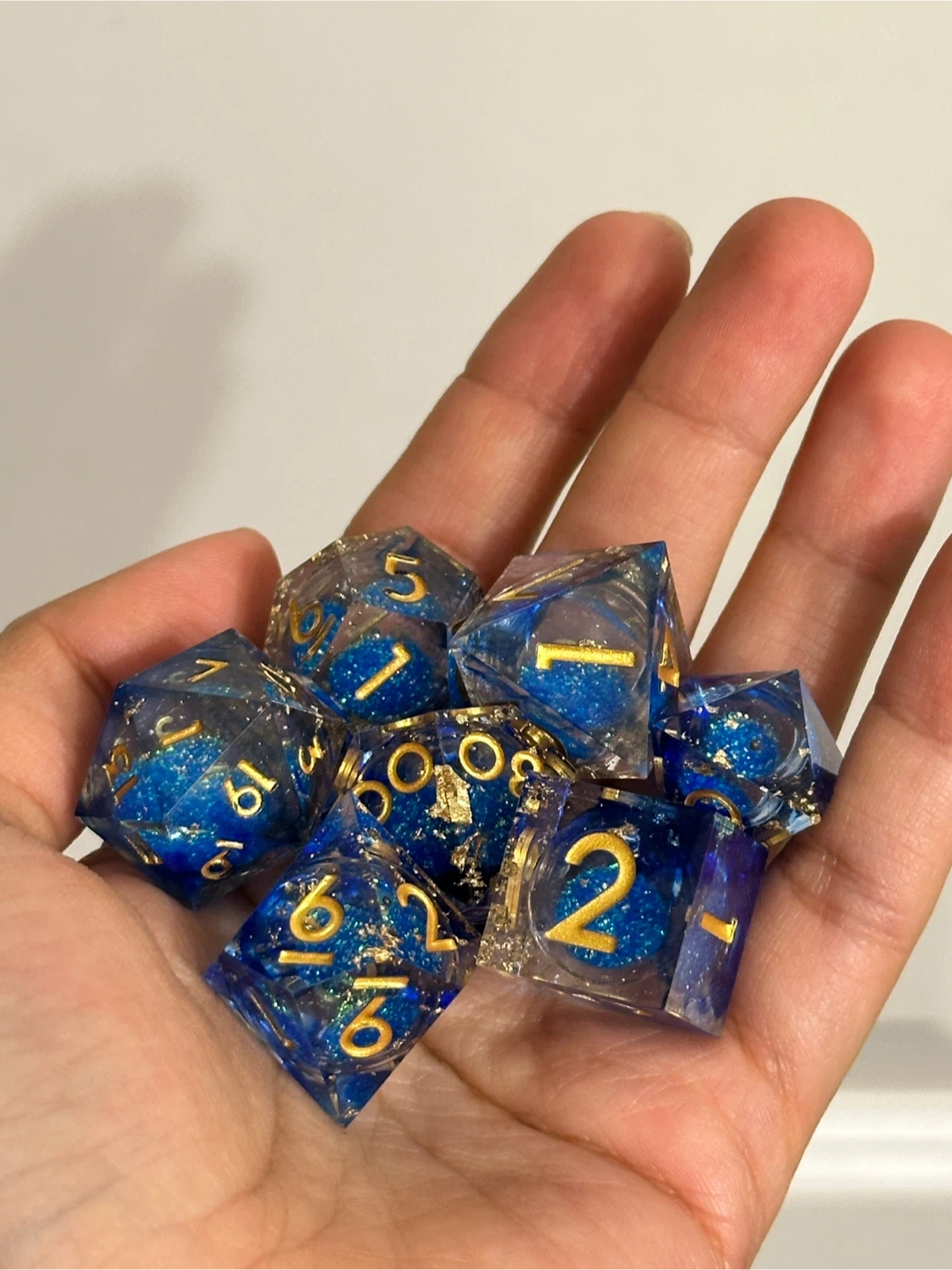 Brand new in bag set of 7 dice... These are liquid core, the glitters inside move like a snow globe!!! Super cool and entertaining for any game! Set of 7 for $15.